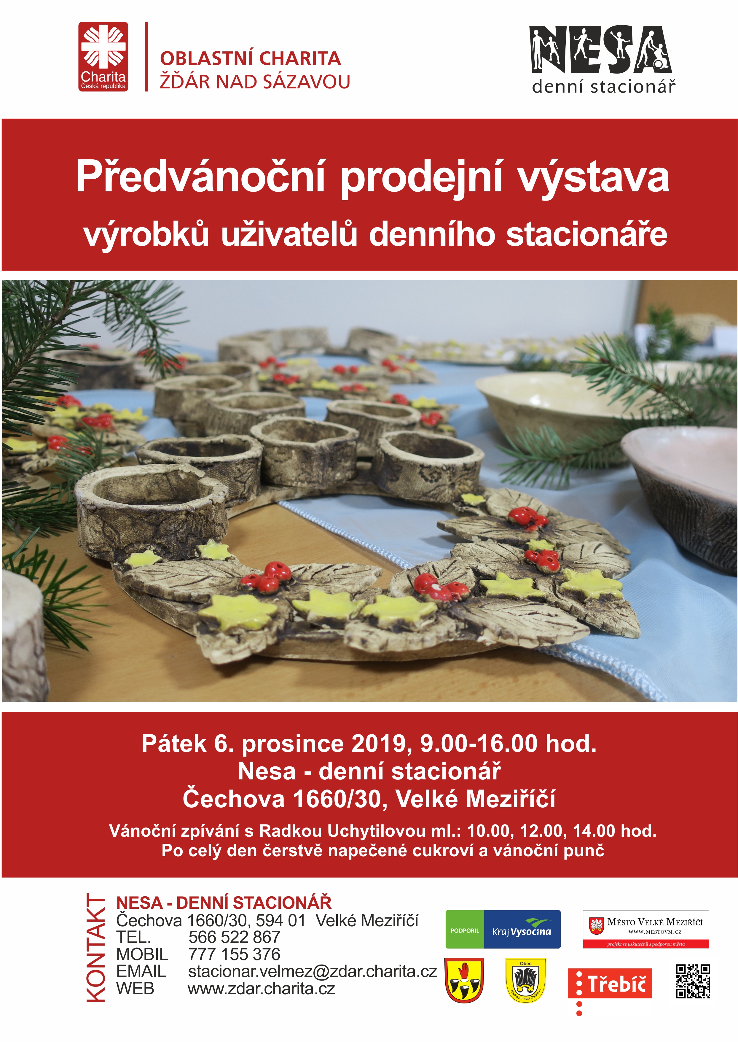 Denní stacionář Nesa ve Velkém Meziříčí pořádá v pátek 6. prosince od 9 do 16 hodin tradiční předvánoční výstavu.