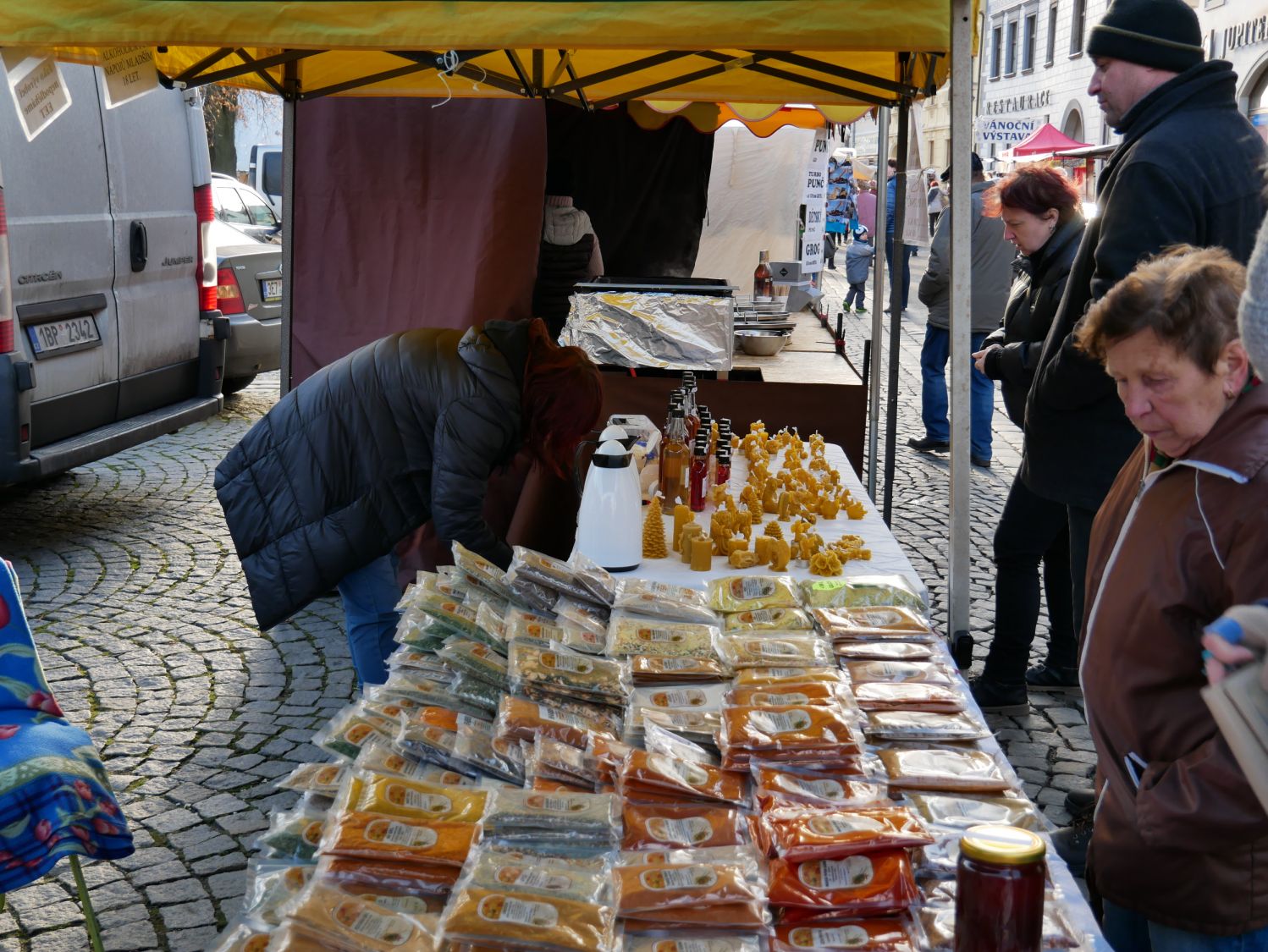 Tradiční vánoční řemeslný trh od dnešního rána zaplnil náměstí desítkami stánků prodejců z blízkého i vzdálenějšího okolí.