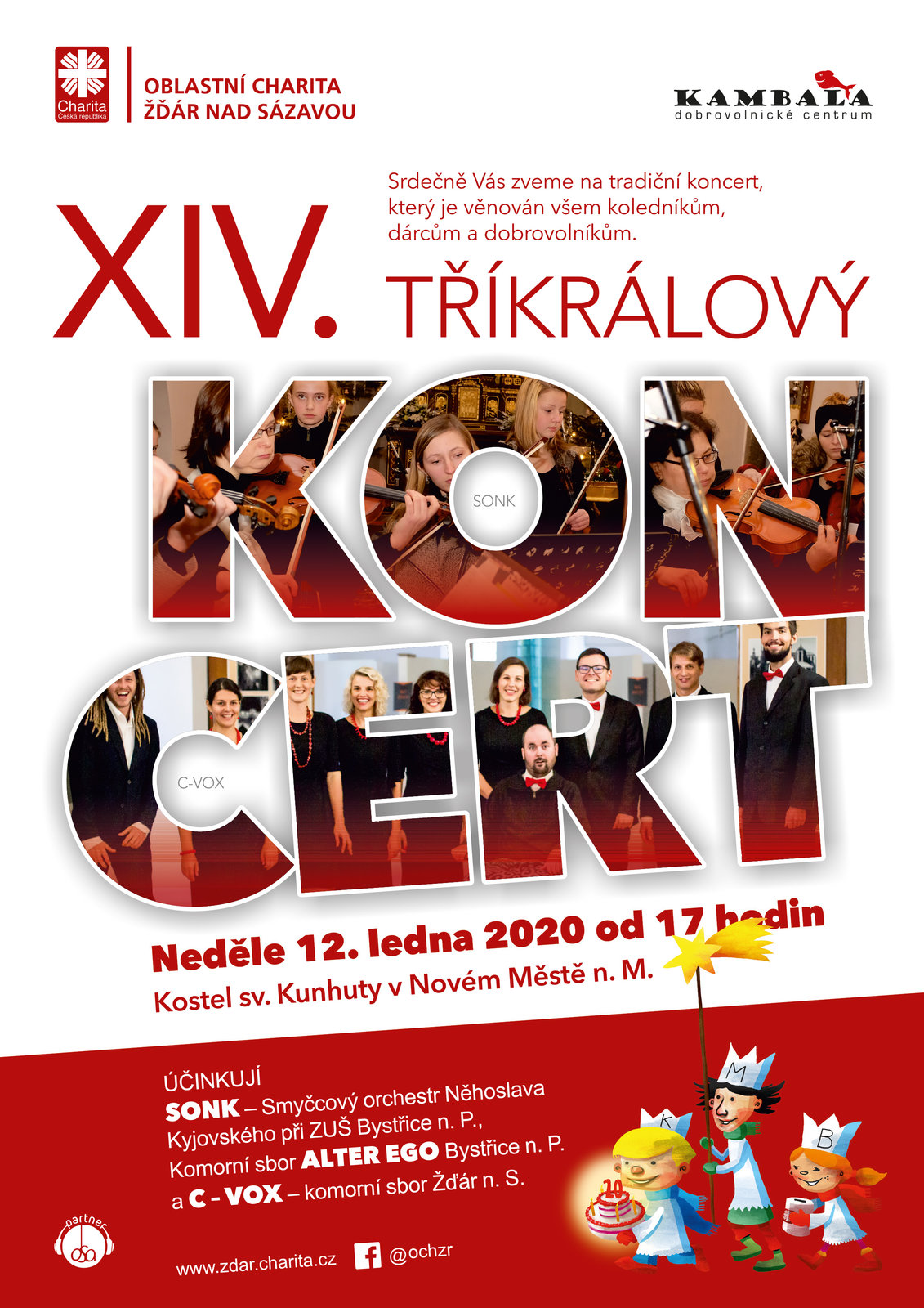 Tradiční děkovný koncert, který je určený všem koledníkům, dárcům, dobrovolníkům a příznivcům Tříkrálové sbírky roku 2020 proběhne v neděli 12. ledna 2019 od 17.00 hodin v kostele sv. Kunhuty v Novém Městě na Moravě
