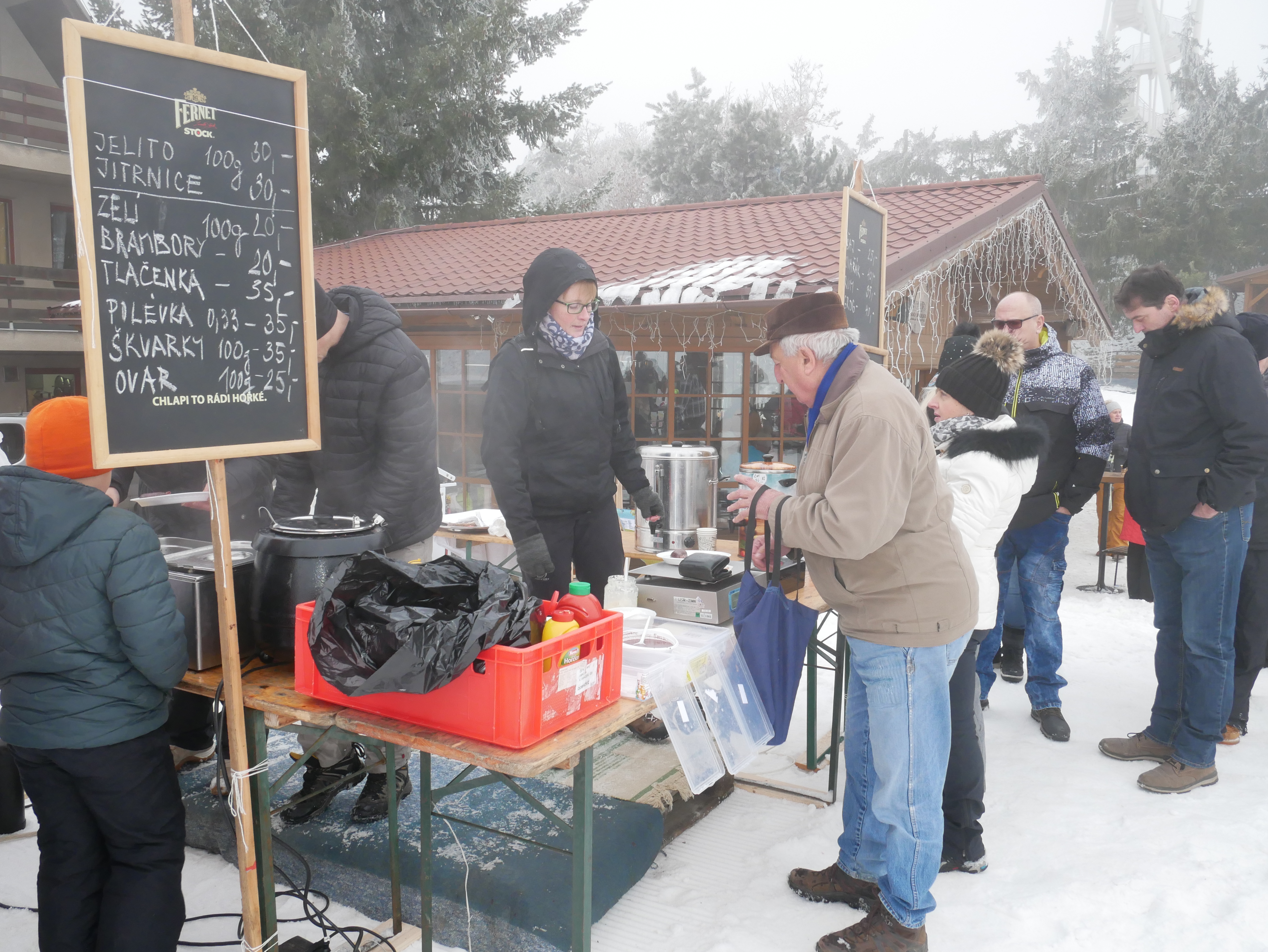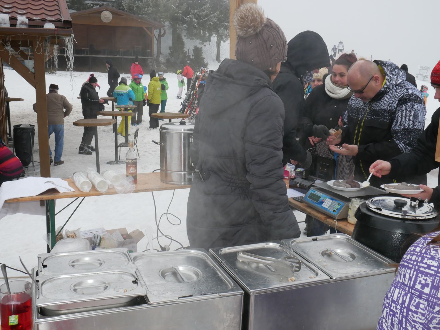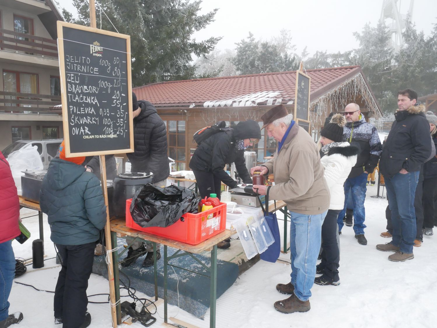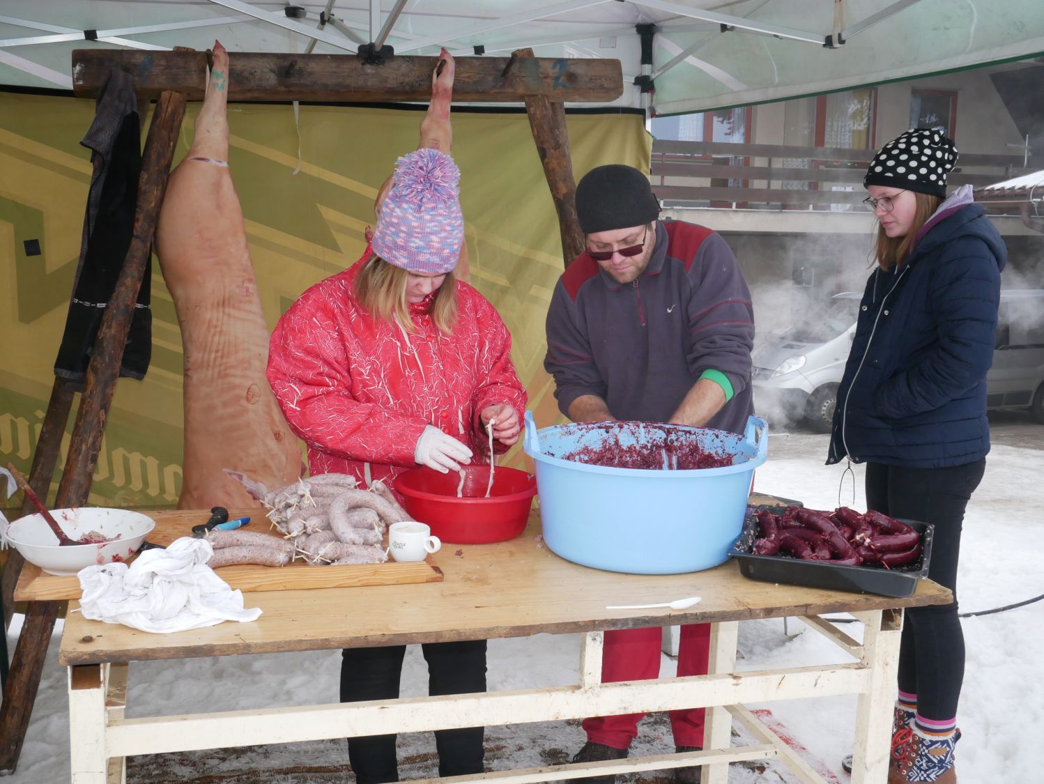Jelita, jitrnice, škvarky či ovar mohli návštěvníci ski areálu ochutnat i letos. Tradiční zabijačka na Fajtově kopci proběhla v neděli 26. ledna.