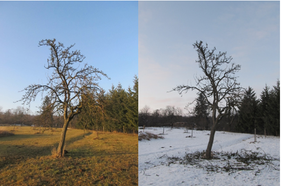 Zmlazovací řez před zásahem (vlevo) a po zásahu (vpravo)