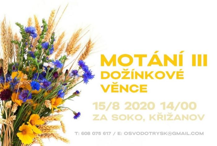 V sobotu si mohou zájemci přijít za křižanovskou sokolovnu užít zcela odpočinkové odpoledne strávené tvořivou prací. Motat se budou raně dožínkové či pozdně letní věnce.