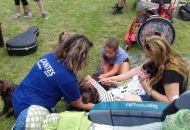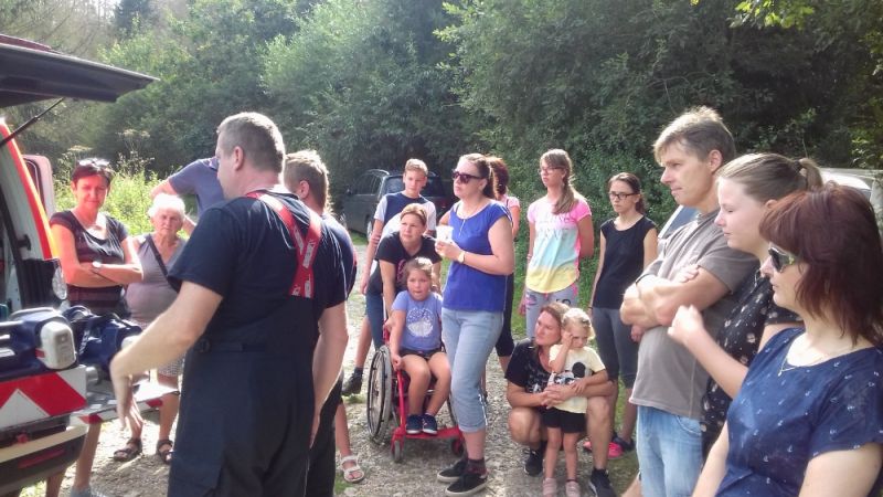 Přicházející děti hned vesele vítali pejsci (někteří hodně velcí) a děti i dospělí členové Asociace je mohli česat, měřit jim tlak, ošetřit fiktivní poranění, dosyta je pomazlit a vyjít si s nimi do lesa na vycházku. Dvě canisterapeutky a 3 speciálně cvičení psi ze sdružení Cantes tak opět umožnili dětem prožít hezké chvíle se čtyřnohými přáteli. Jedním z bodu programu byl příjezd profesionálních hasičů z Velkého Meziříčí, kteří účastníkům akce ukázali, co jejich auto skrývá a vysvětlili, k čemu se co používá a jak funguje integrovaný záchranný systém.