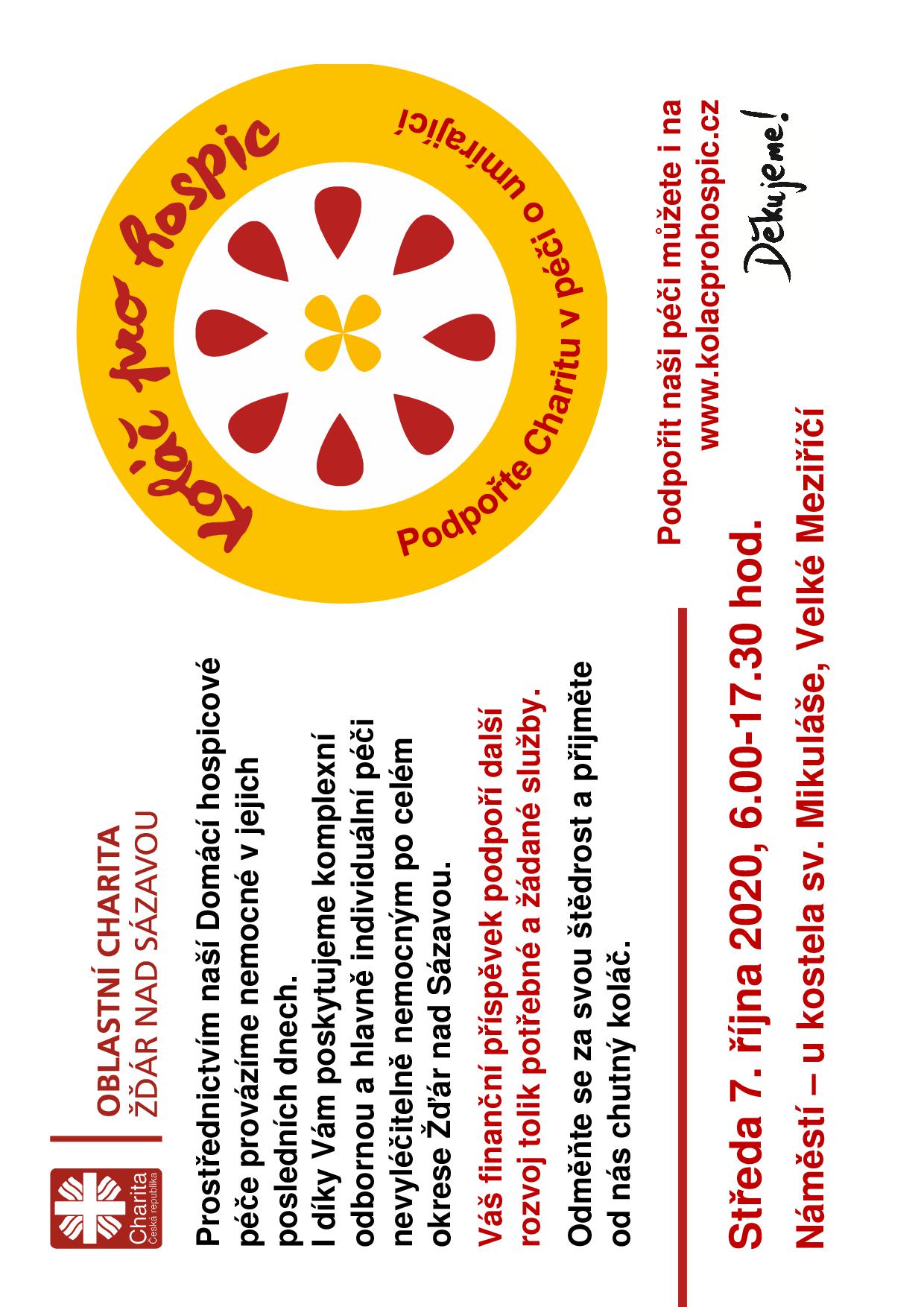 Ve středu 7. října 2020 se uskuteční již 8. ročník charitativní akce KOLÁČ PRO HOSPIC, kterou tradičně pořádají Charity napříč Krajem Vysočina i Jihomoravským krajem. Cílem této kampaně je podpora rozvoje místní Domácí hospicové péče. Žďárská Charita letos nabídne koláče ve Žďáře nad Sázavou, v Bystřici nad Pernštejnem a ve Velkém Meziříčí. Podpořit Domácí hospicovou péči bude možné i v online podobě přes webové stránky www.zdar.charita.cz.