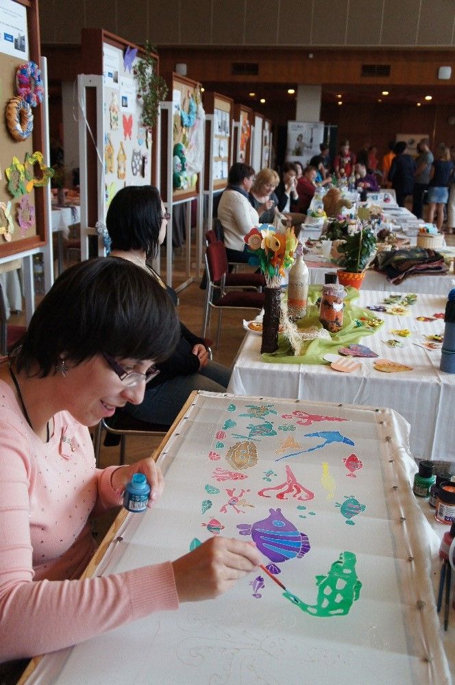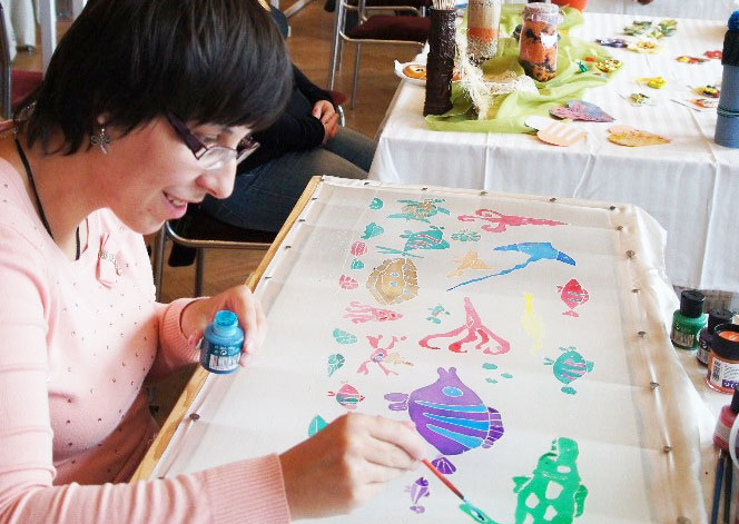 Barevná dílna: malování na hedvábí, malba na textilní tašky, ruční výroba svíček a mýdel, pestrá nabídka výtvarných technik
