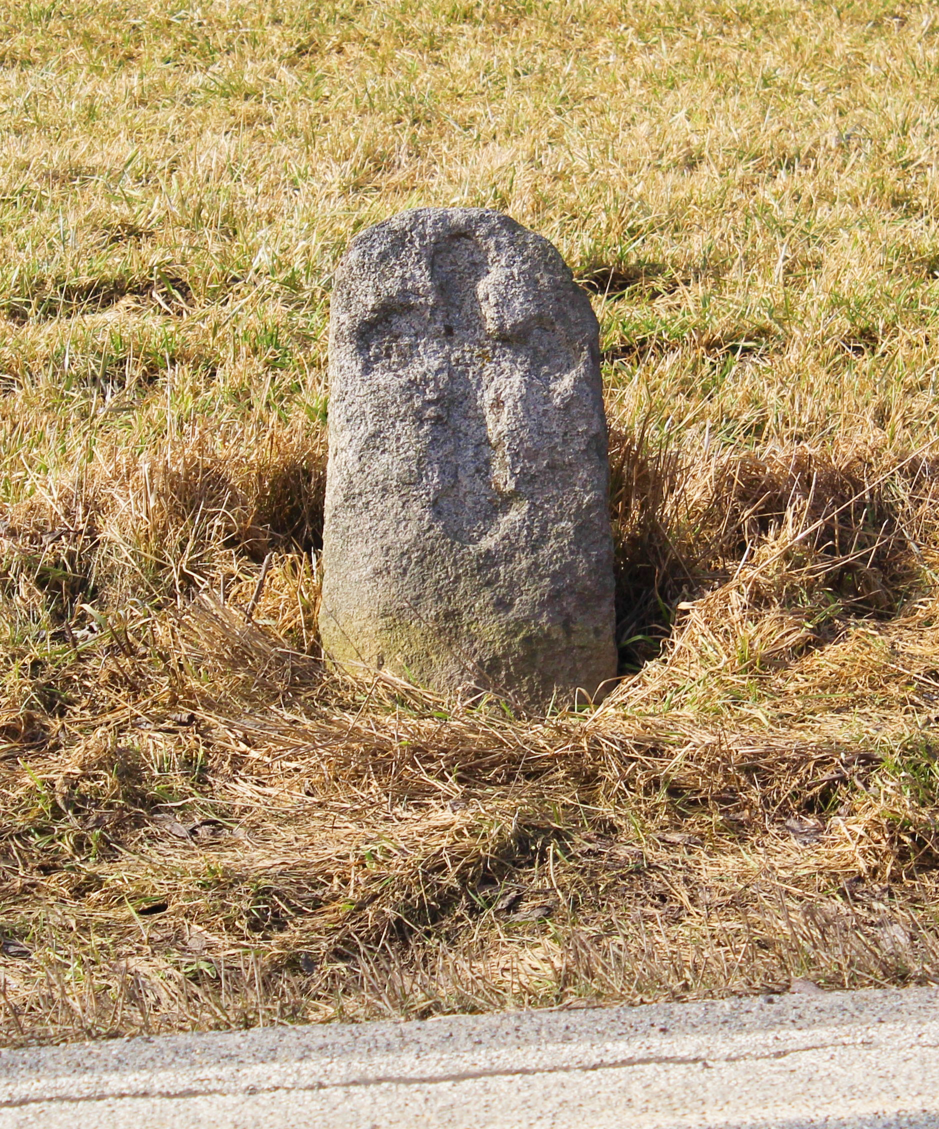 Po roce jsem zahájil pátrání po zbývajících kamenech a pro radu si zajel nejen za paní Strakovou a jejím bratrem, ale pomoc jsem hledal i u Hořínků na hájovně. Jeden kámen hned u silnice prý byl zasypán při úpravě můstku, ale ten zbývající v lese jsem podle návodu skutečně nalezl. Jedná se o krásný vysoký kámen (124 x 56,5 x 12 cm), který je silně nakloněn doleva. V žulové desce je pečlivě vypracován latinský kříž, ale celkové provedení se hodně liší od kamene u Jakubovského dvora, takže jeho původ může být i odlišný. Třeba se i tady jedná o kámen pytlácký.
