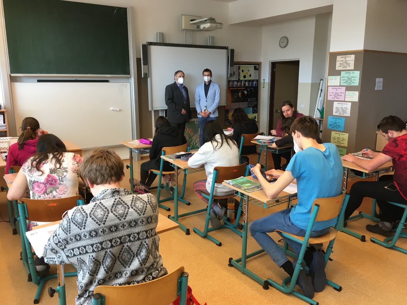 V pátek 7. května 2021 naši školu navštívil krajský radní pro školství, mládež a sport, informatiku a komunikační technologie RNDr. Jan Břížďala. Bylo to jeho další seznámení se školami v našem kraji a nás velmi potěšilo, že i naše malá škola měla možnost osobně prezentovat své žáky a prostory pro jejich vzdělávání.