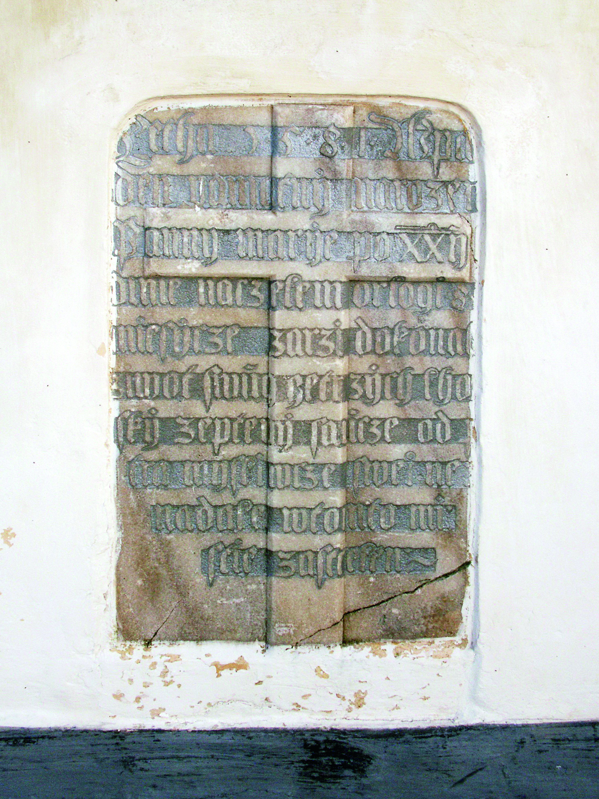 Krásný kámen s textem byl očištěn, restaurován a opatřen tabulkou s vysvětlením. Zůstal zazděný u kostela. A s ním také tucty nových šafářů, nešťastných Marií i zoufalých myslivců.