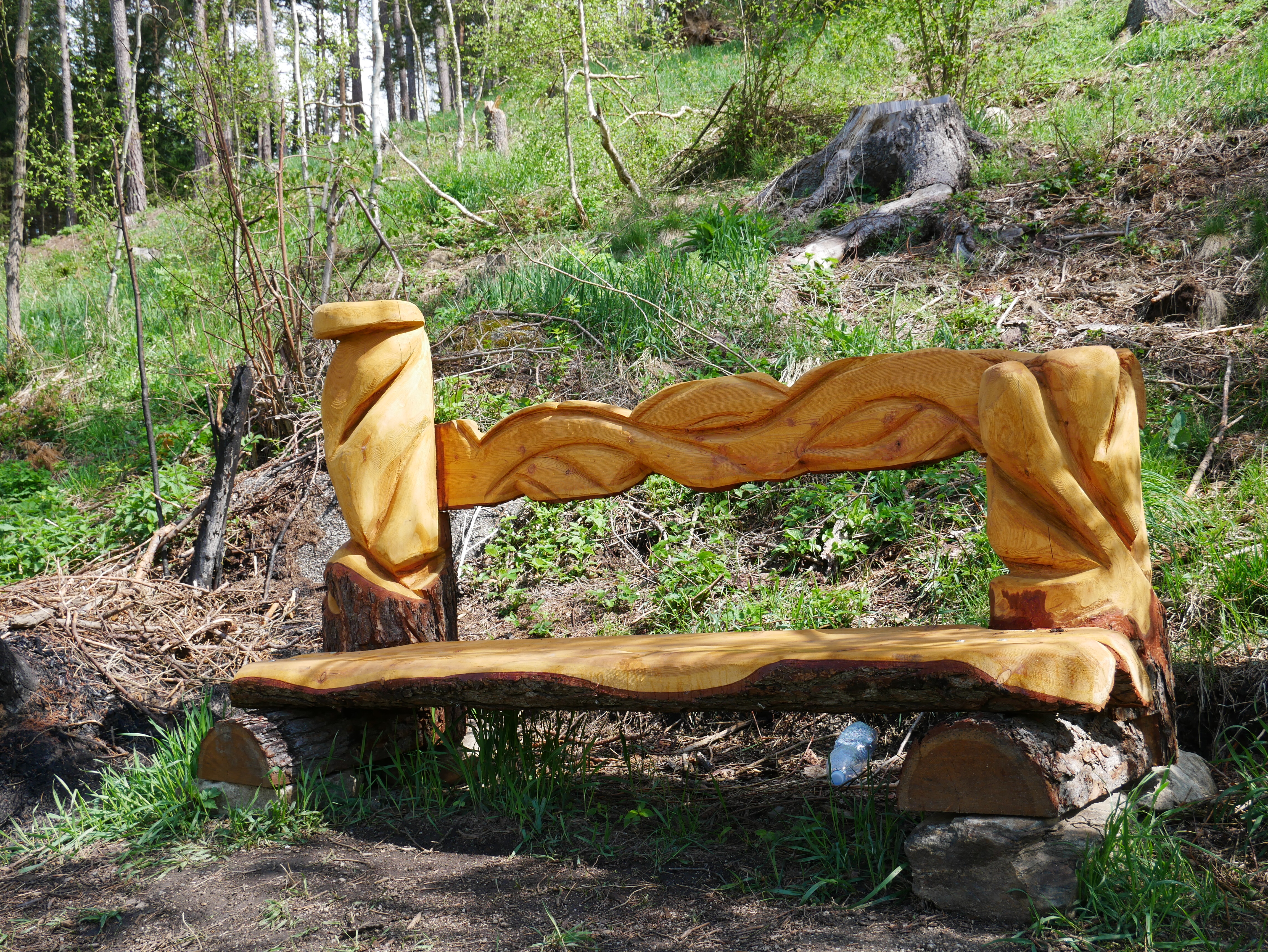 Do cíle jsme došli. Pokud by vás cesta přece jen trochu zmohla, usaďte se a odpočiňte si na krásné originální dřevěné lavičce, kterou nechal vyrobit Vincenc Záviška. A pak hurá zpět domů.