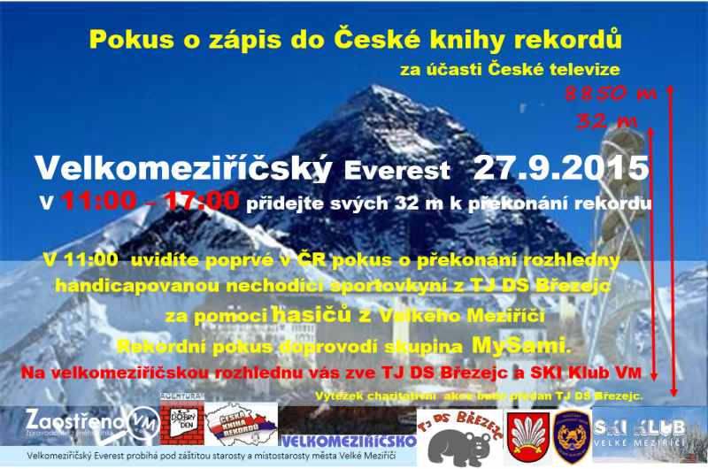Zapojí se i handicapovaná sportovkyně z březejckého dětského střediska za pomoci velkomeziříčských hasičů, která se tak pokusí o prvovýstup nechodící osoby na rozhlednu a tím o zápis do České knihy rekordů.
