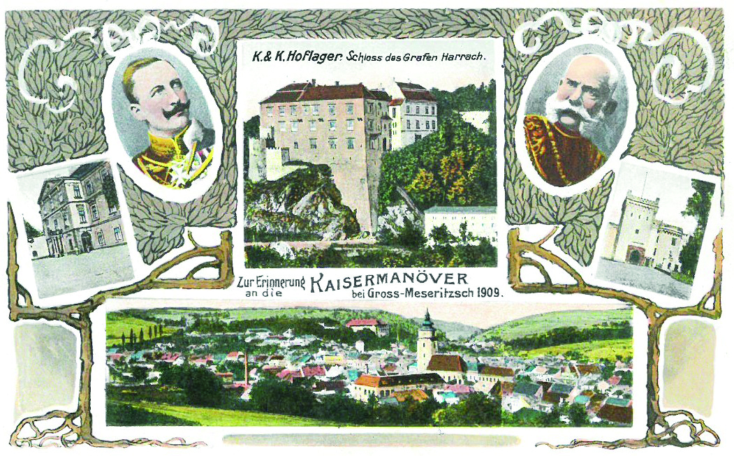V září roku 1909 se hrabě Harrach stal hostitelem hned dvou císařů, a to Františka Josefa I. a Viléma II. Oba císaři se zde spolu s následníkem trůnu Františkem Ferdinandem d'Este zúčastnili císařských manévrů. Návštěvníci si i dnes mohou prohlédnout ložnici, v níž nocoval František Josef I.