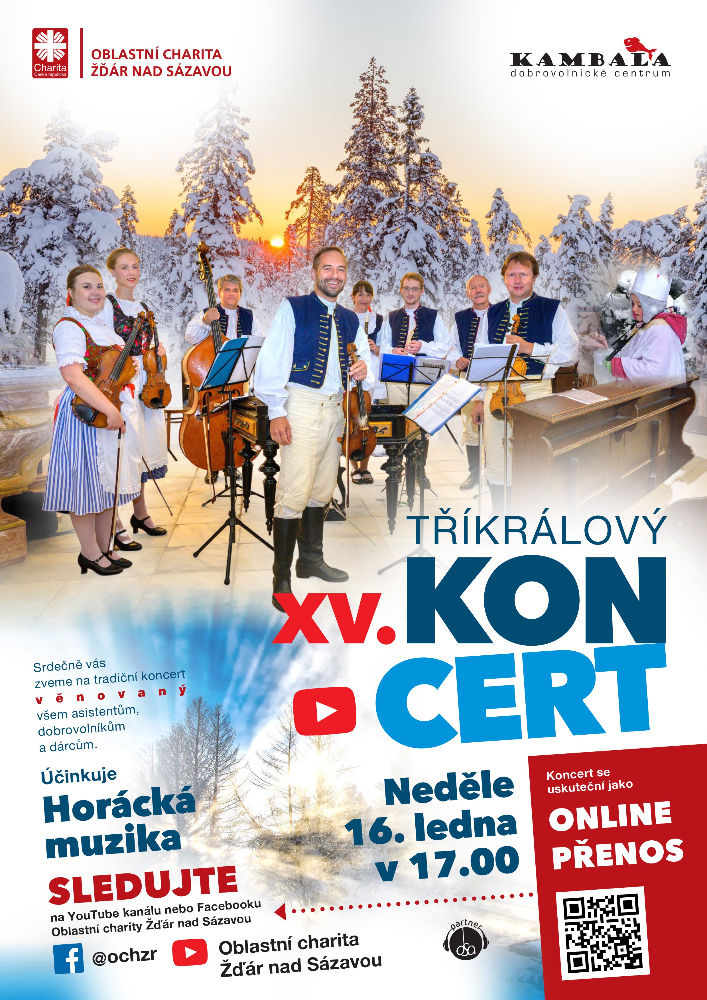 Srdečně vás zveme na tradiční Tříkrálový koncert věnovaný všem asistentům, dobrovolníkům a dárcům, kteří se jakkoliv zapojili při organizaci a průběhu letošní Tříkrálové sbírky.