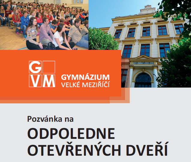 Gymnázium Velké Meziříčí zve na Odpoledne otevřených dveří ve středu 2. února od 14:30 do 17:30 hodin. Zájemci o studium na prestižní velkomeziříčské škole získají podrobnější informace, prohlédnou si školu a budou se moci zapojit do zábavných soutěží. Vše se přizpůsobí aktuálně platným vládním nařízením, proto průběžně sledujte stránky školy.