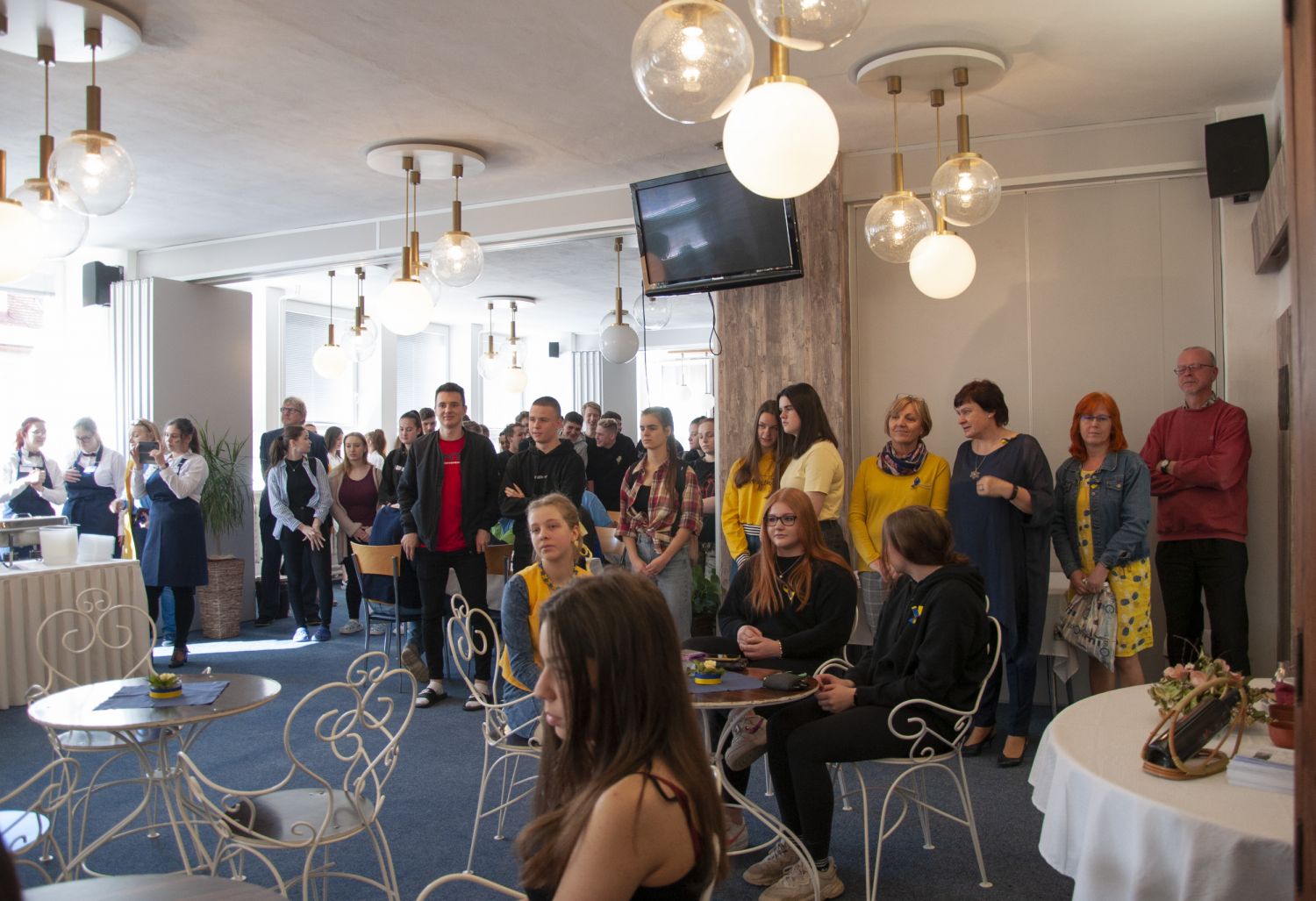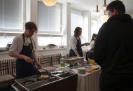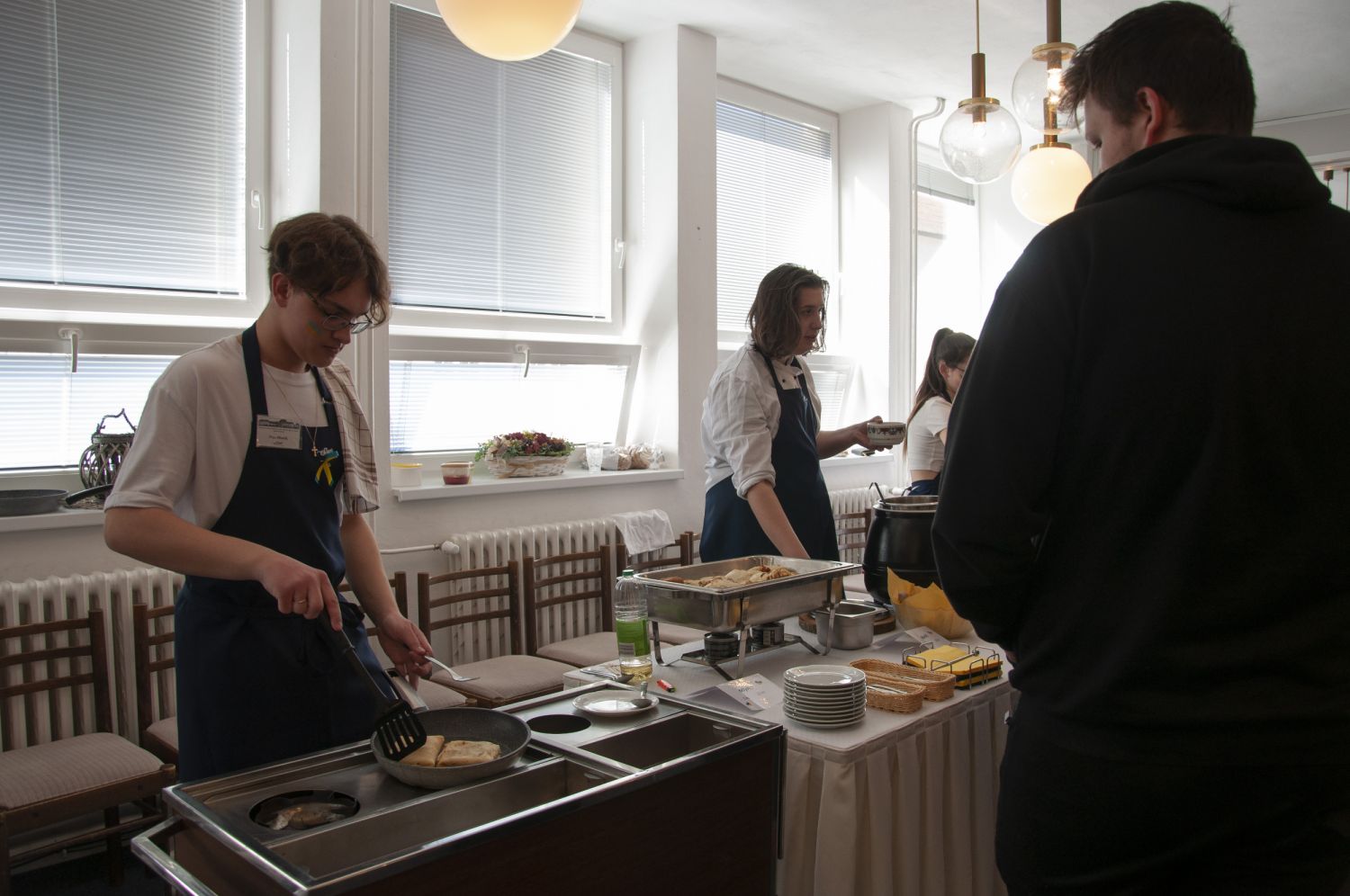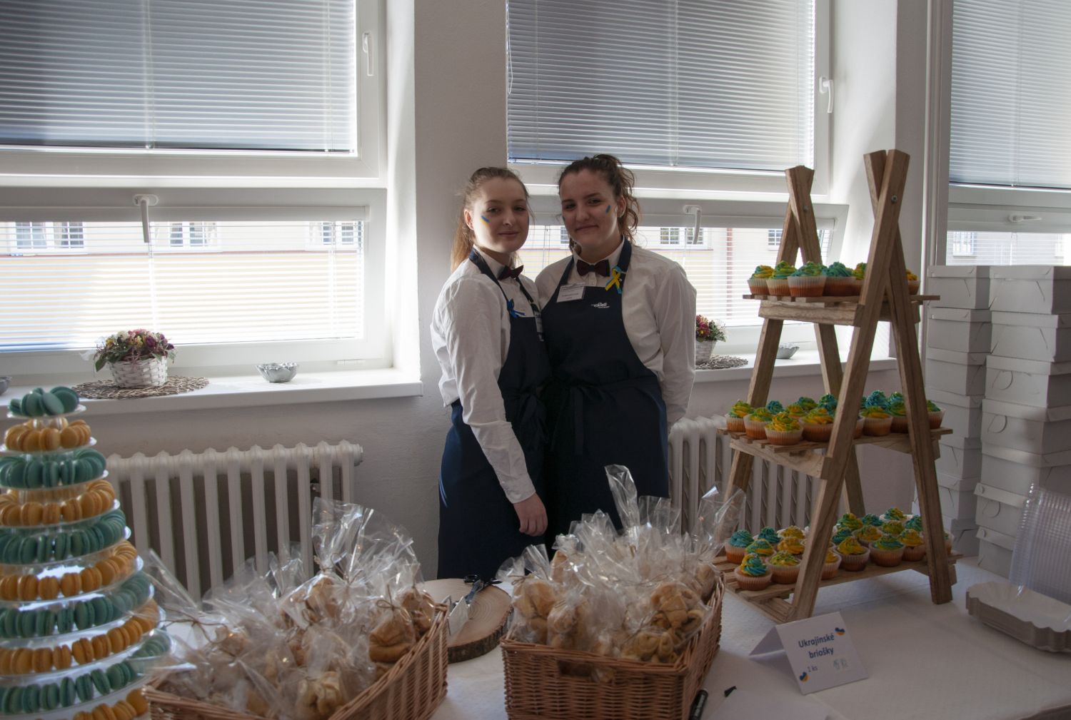 Netradiční pokrmy ukrajinské kuchyně si pro ostatní studenty školy připravili druháci oboru Hotelnictví v čele s Matějem Sobotkou, prváci oboru Kuchař-číšník a Karin z 3. ročníku obor Kuchař-číšník.