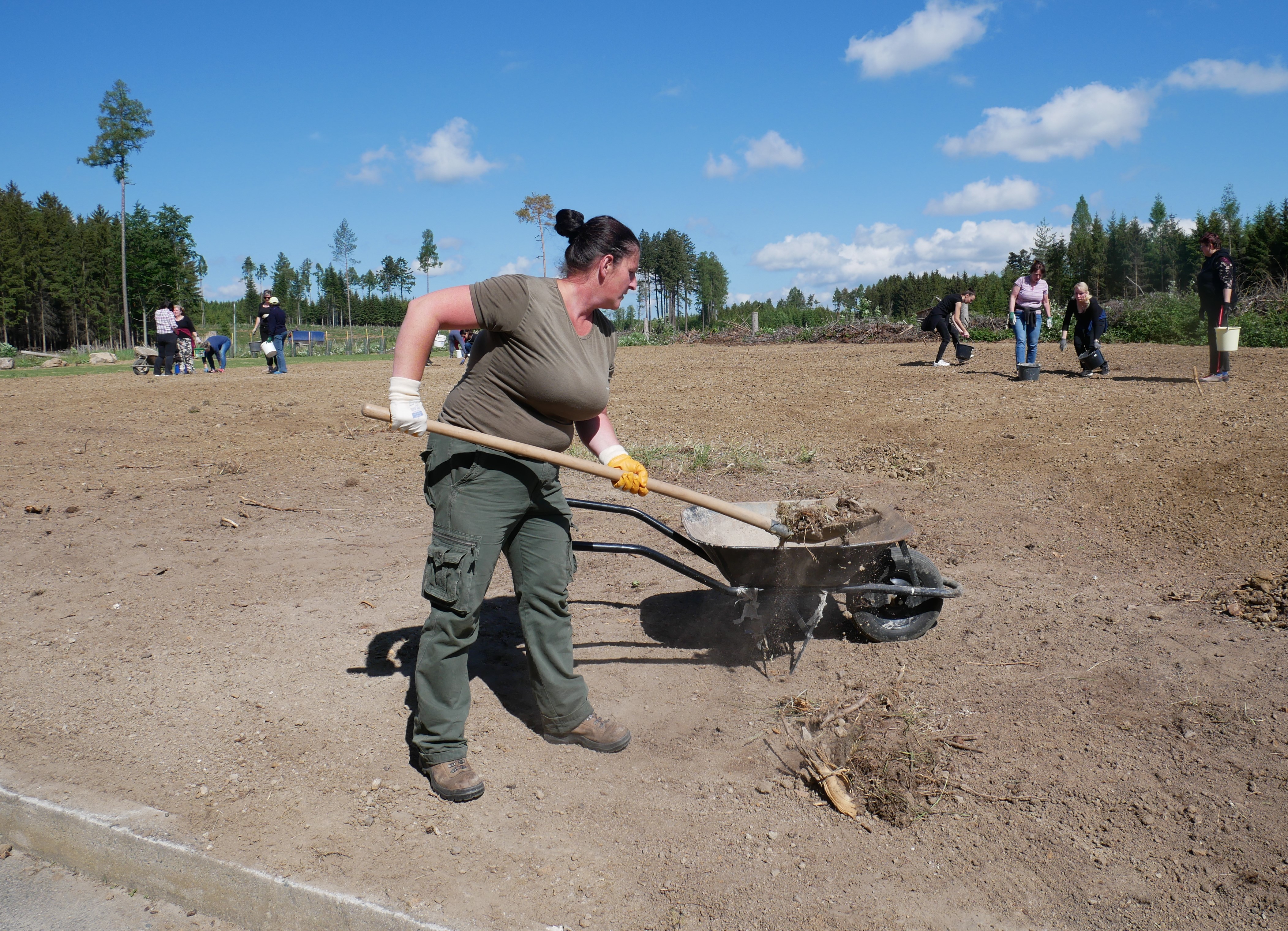 Zaměstnanci úřadu pomáhají s budováním parku v Březejci