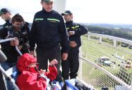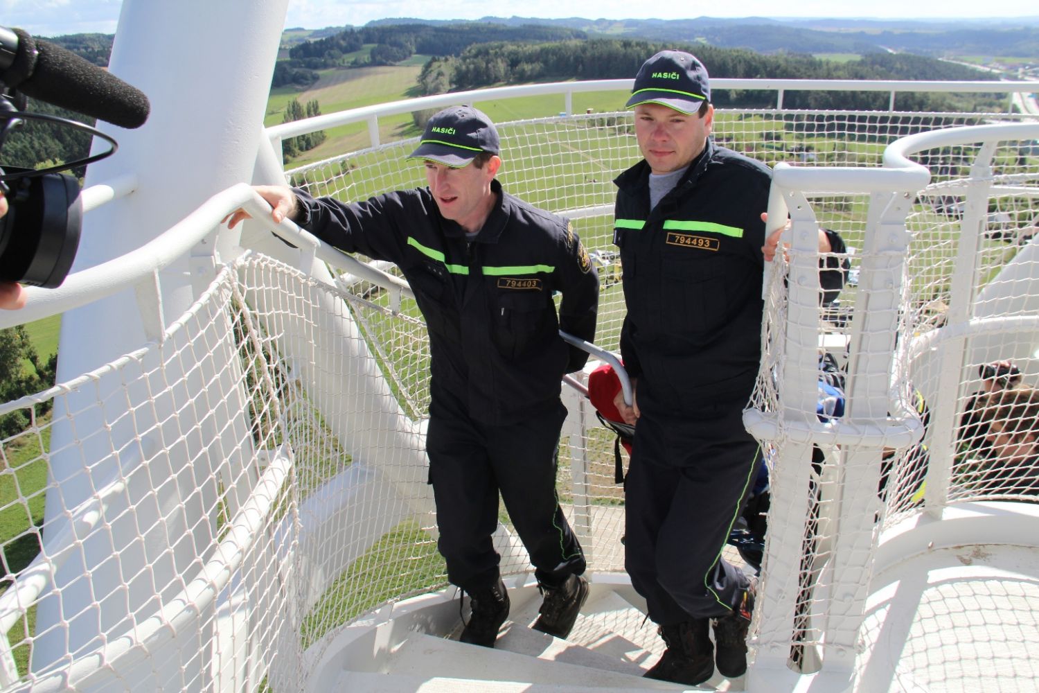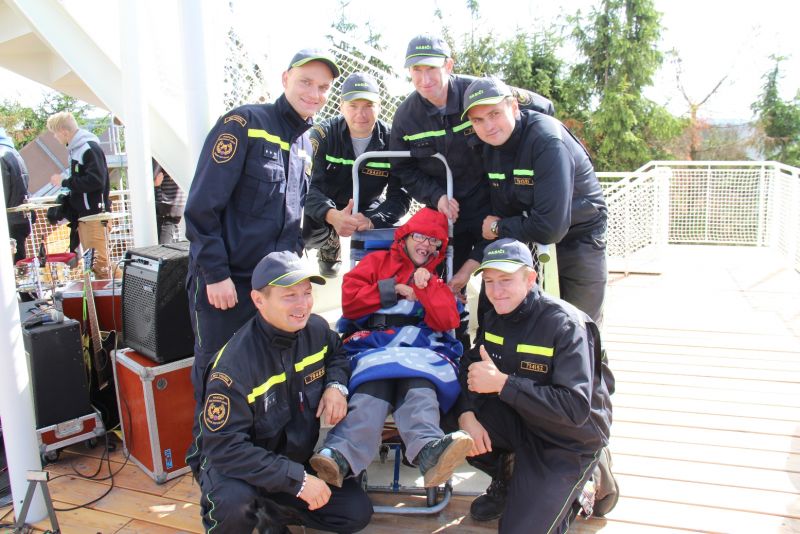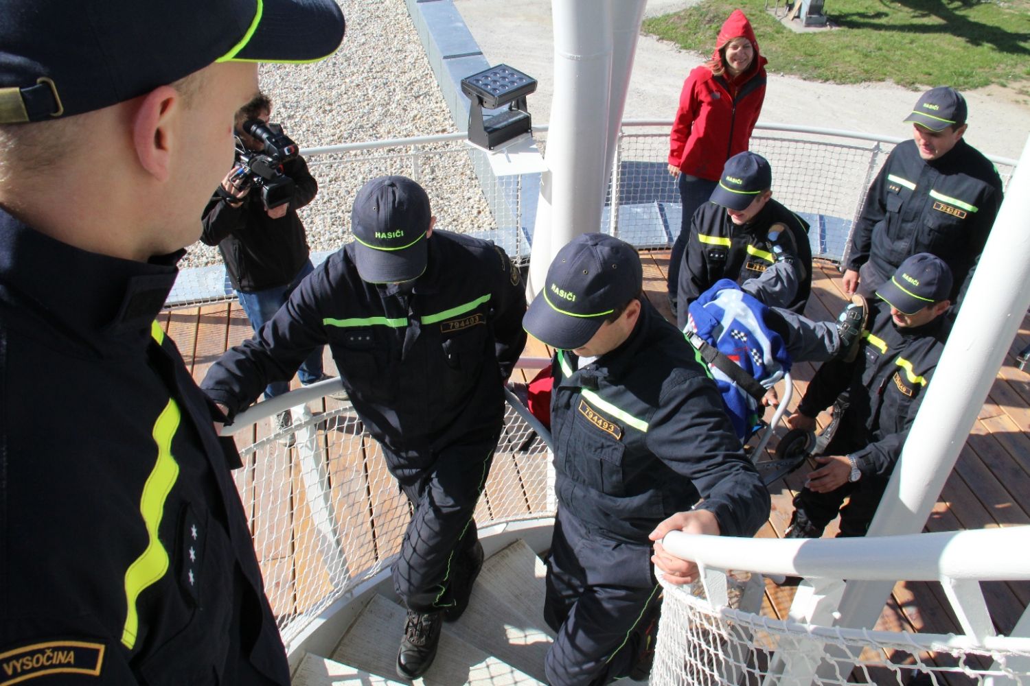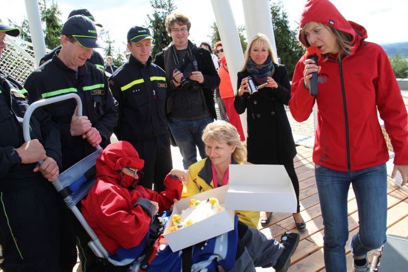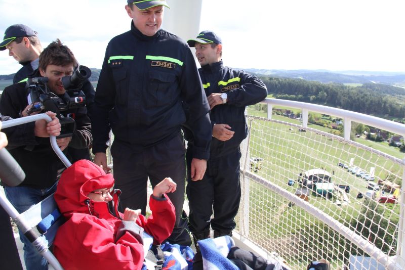 „Je tady luxusní výhled. Nikdy jsem nebyla tak vysoko a ani jsem nevěřila, že se někdy tak vysoko dohrabu," neskrývala nadšení sportovkyně - boccistka Míša Zdráhalová poté, co se dostala na vyhlídku. Tam ji vynesla šestice hasičů na schodolezu za pouhé dvě minuty a jedenáct vteřin. Míša jejich výkon ocenila. „Byli úžasní. Ptala jsem se jich cestou, zda jim nedojde dech, ale oni by to dali ještě čtyřikrát."