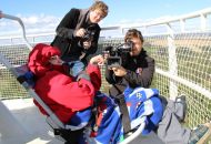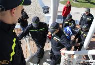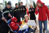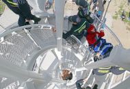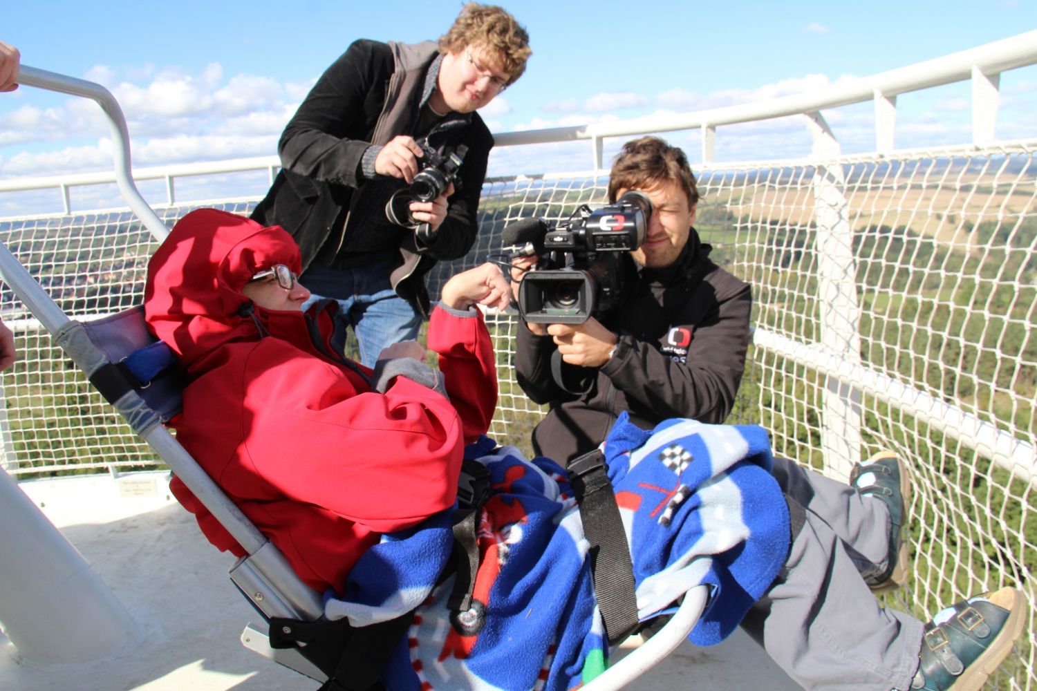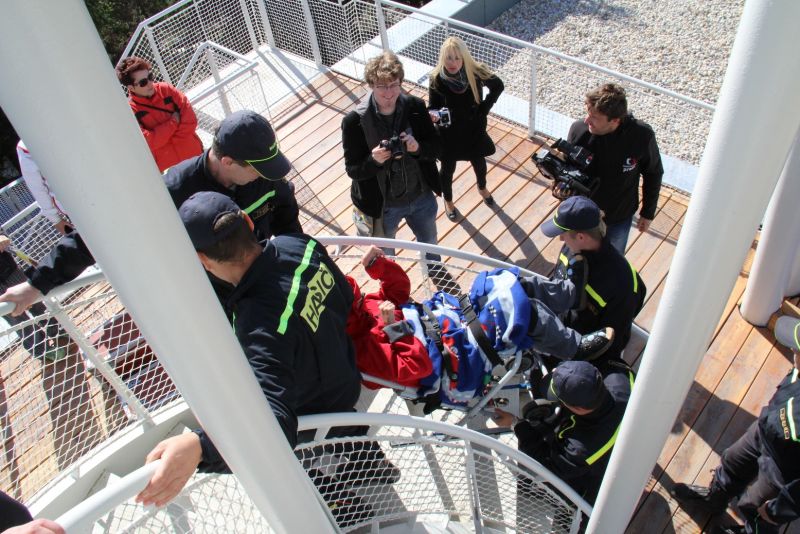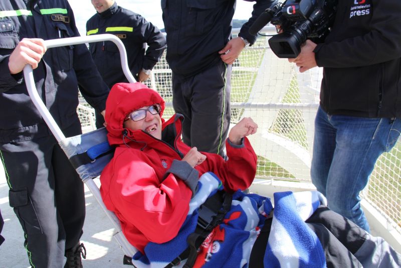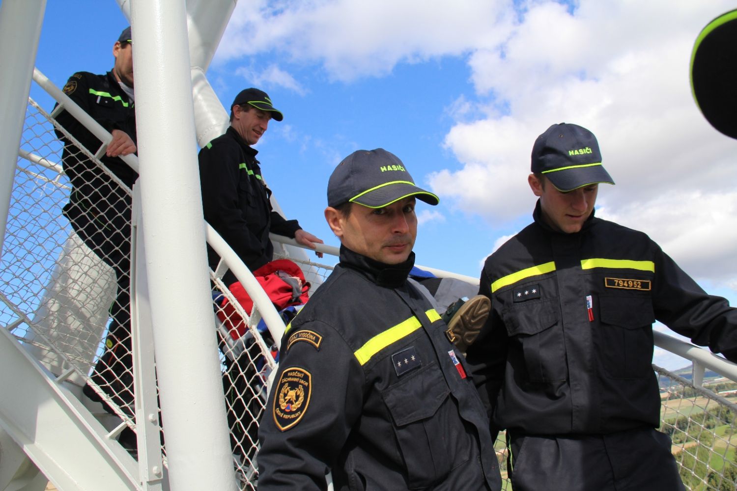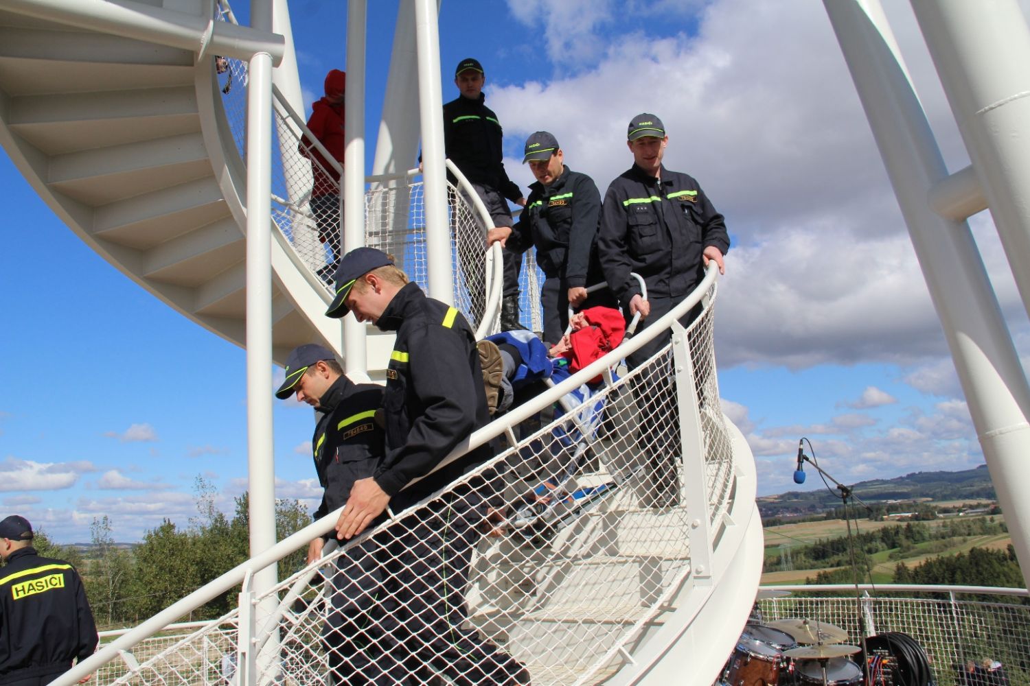 „Je tady luxusní výhled. Nikdy jsem nebyla tak vysoko a ani jsem nevěřila, že se někdy tak vysoko dohrabu," neskrývala nadšení sportovkyně - boccistka Míša Zdráhalová poté, co se dostala na vyhlídku. Tam ji vynesla šestice hasičů na schodolezu za pouhé dvě minuty a jedenáct vteřin. Míša jejich výkon ocenila. „Byli úžasní. Ptala jsem se jich cestou, zda jim nedojde dech, ale oni by to dali ještě čtyřikrát."