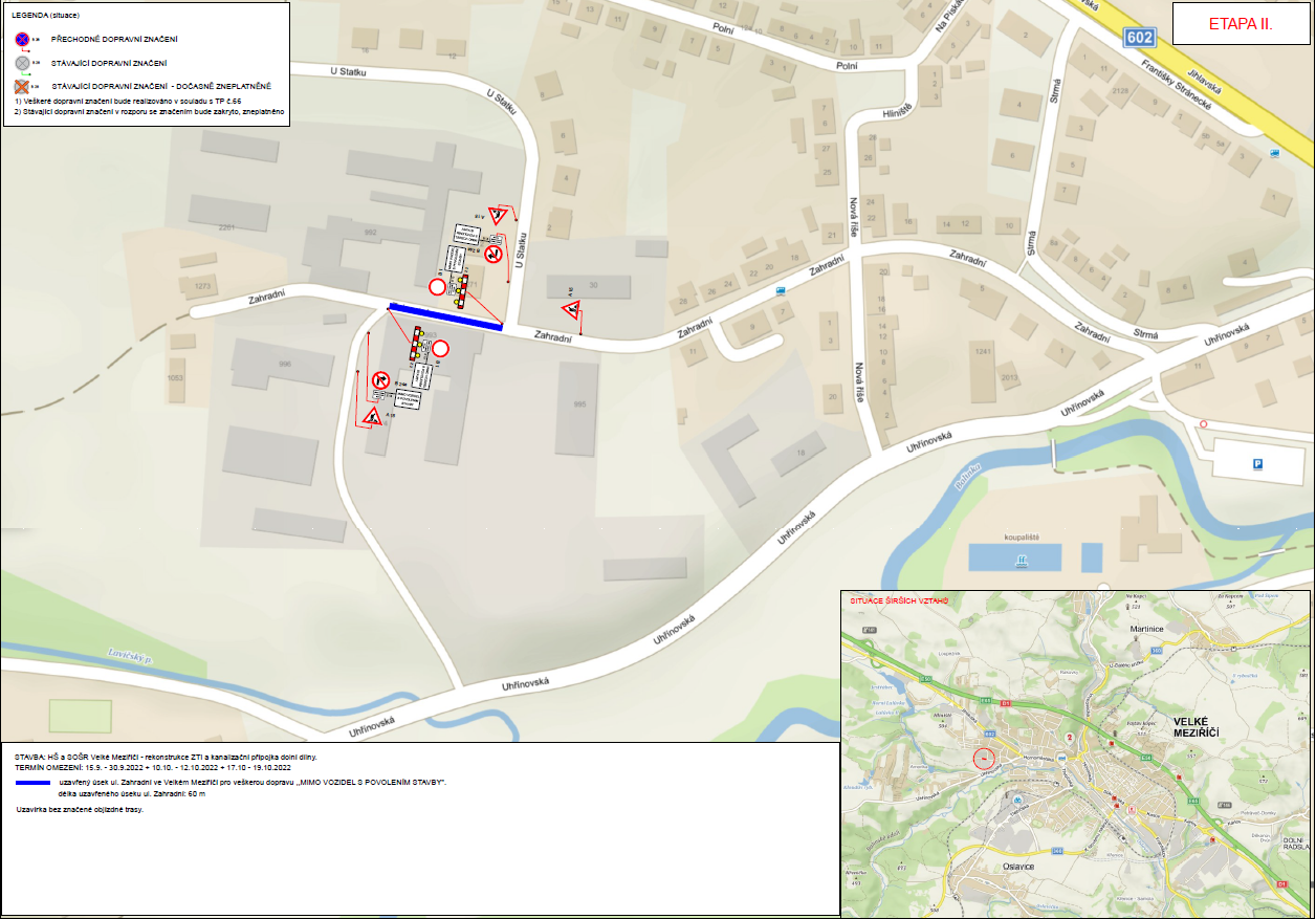 - Zahradní (etapa II) → 15. 9. – 30. 9. 2022, 10. 10. – 12. 10. 2022, 17. 10. – 19. 10. 2022