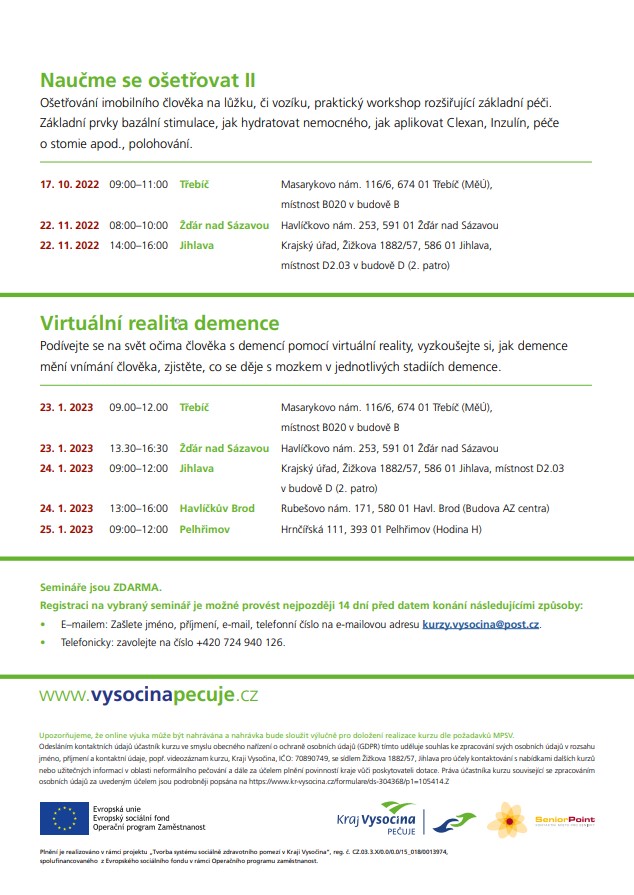 Portál Vysočina pečuje pořádá semináře