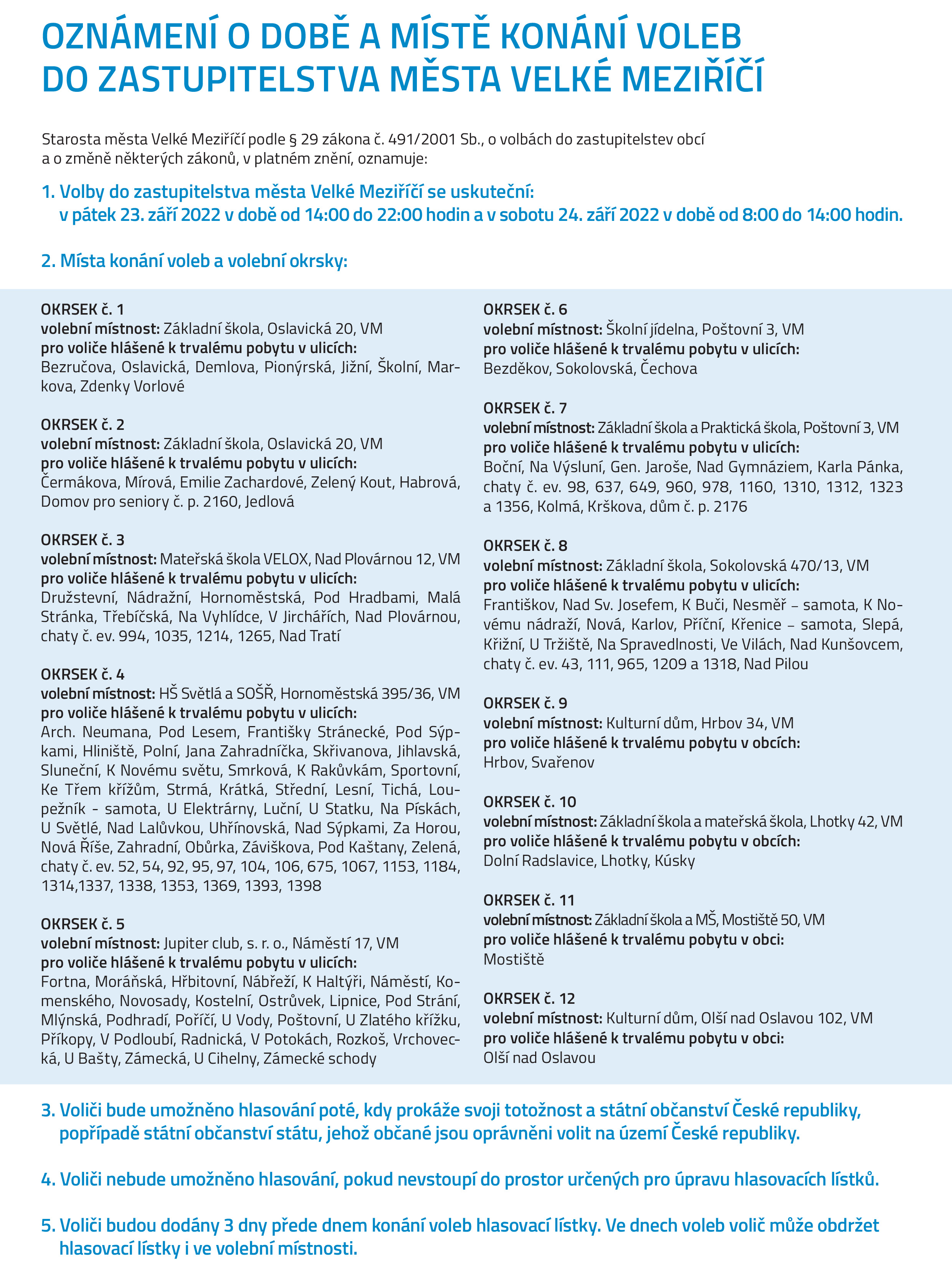 Hlasovací lístky obdrží voliči nejpozději 3 dny přede dnem voleb (20. září 2022).