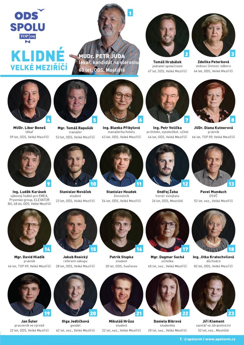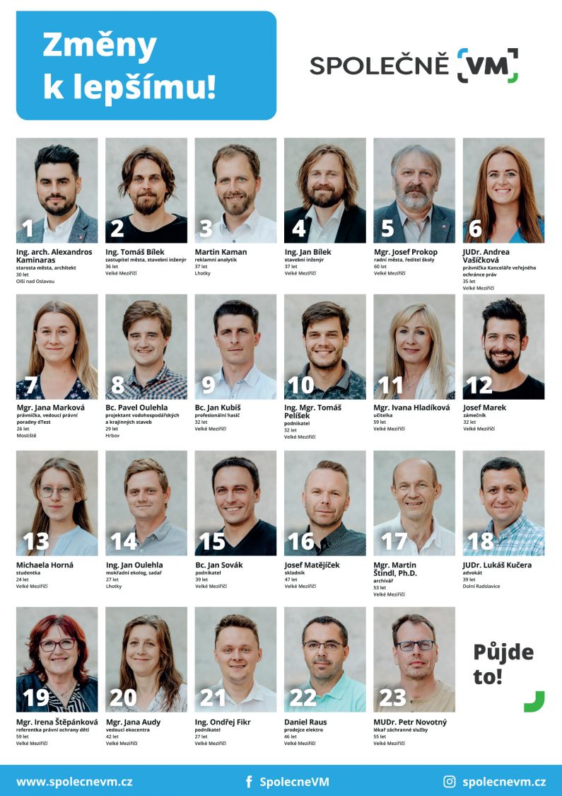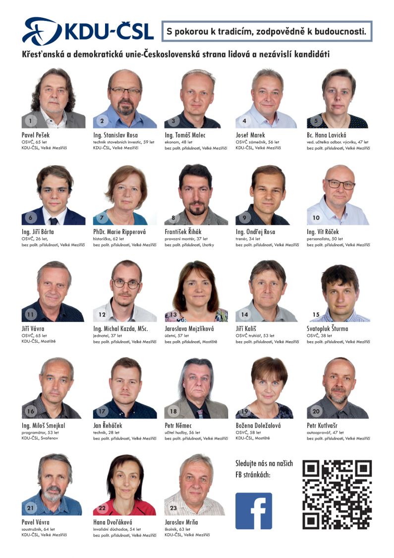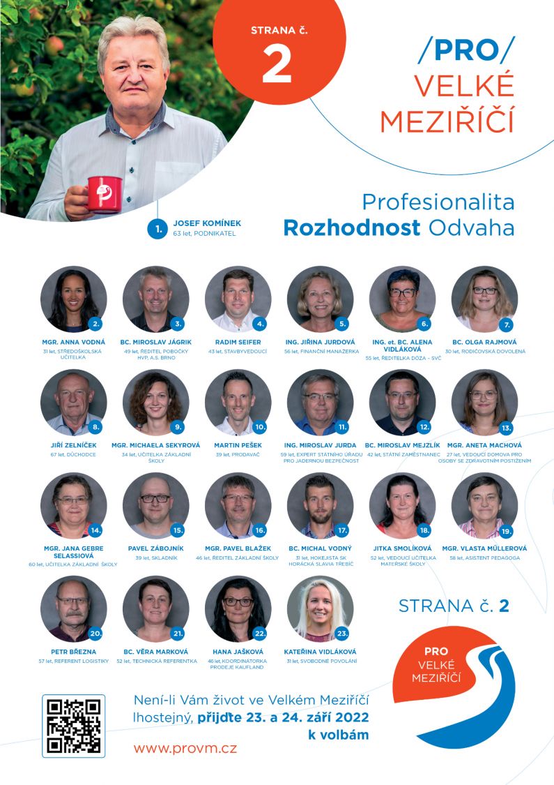 - Označit v rámečcích před jmény kandidátů křížkem toho kandidáta, pro kterého volič hlasuje, a to z kterékoli volební strany. Pro Meziříčí lze označit nejvýše 23 kandidátů.