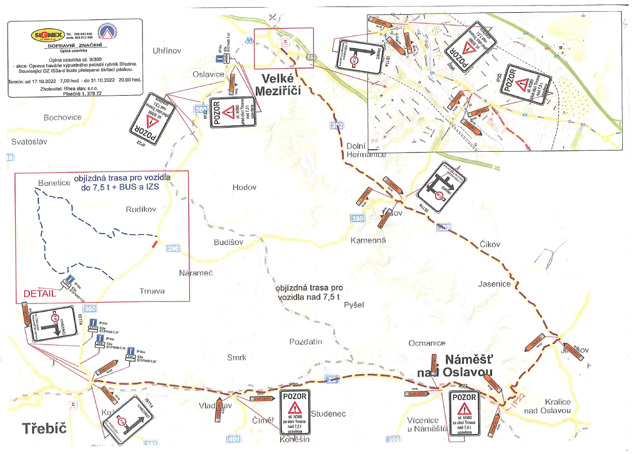 – II/602 Velké Meziříčí (obousměrně). Délka objízdné trasy 43 km.