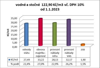 Cena pro vodné a stočné mimo jiné plně respektuje podmínky udržitelnosti projektů realizovaných za pomoci dotací operačního programu životního prostředí a zajišťuje nejnutnější finanční zdroje pro obnovu a rekonstrukce vodohospodářského majetku svazkových obcí, který činí více než 900 km vodovodů a 400 km kanalizací včetně úpraven vod a čistíren odpadních vod. Podíl nájemného činí 27 % z ceny.