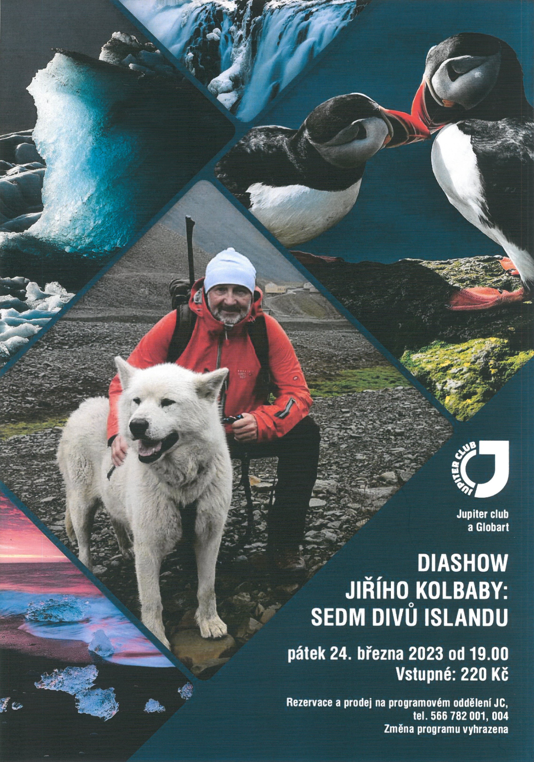 Od 19:00 hodin se, také v pátek 24. března, koná promítání fotografií Islandu s komentářem přímo Jiřího Kolbaby. Vstupné na akci činí 220 korun.