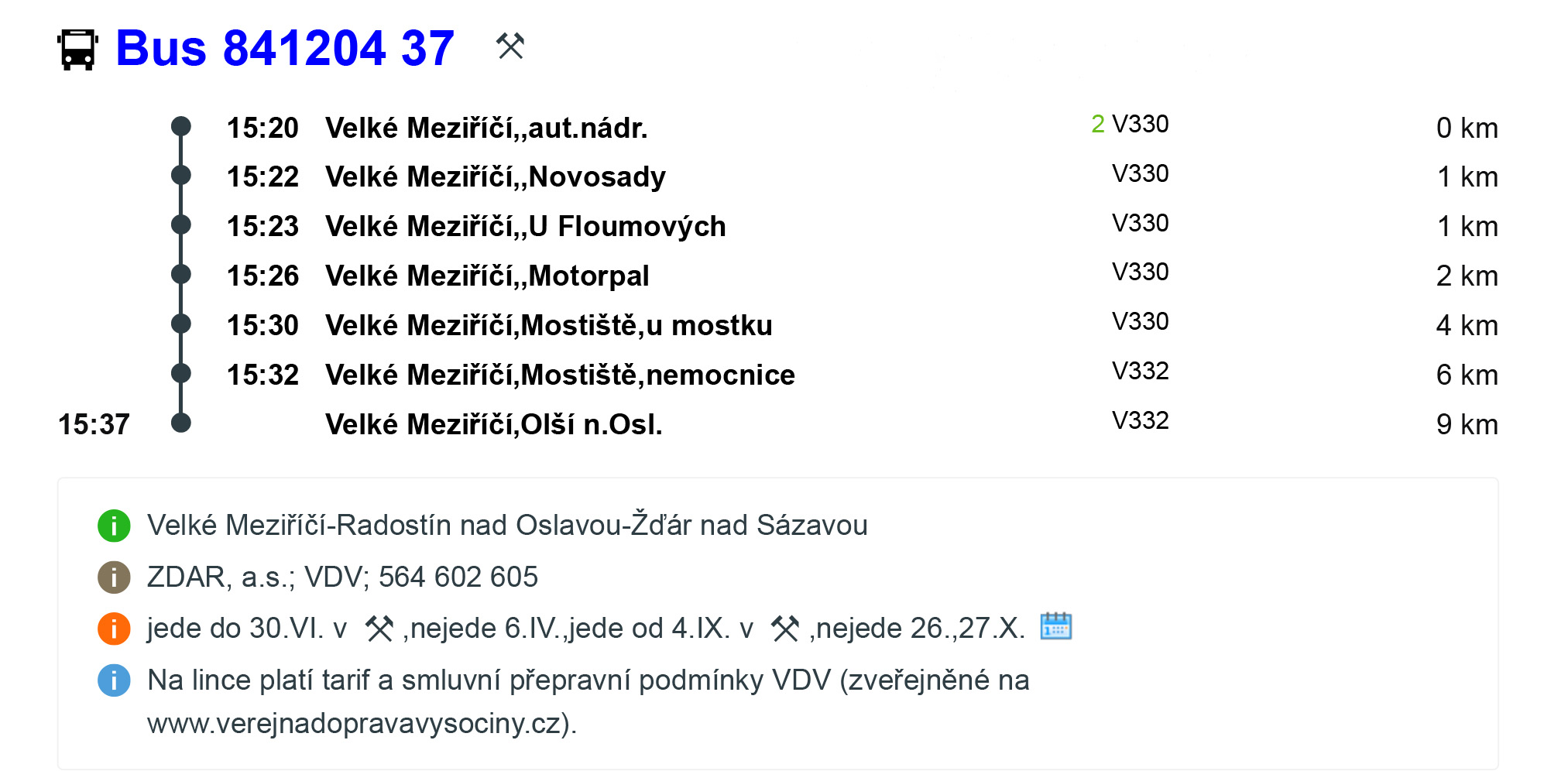 Spoj 37 Velké Meziříčí – Mostiště – Olší nad Oslavou