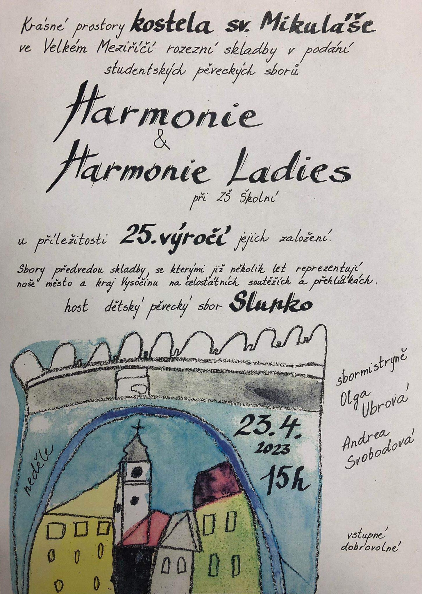 Na koncert k 25. výročí od založení sborů přijďte do kostela v neděli 23. dubna. Od 15:00 si budete moci poslechnout hudbu v podání místních sborů, zvláštním hostem na akci je Slunko.