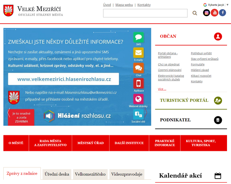 Město Velké Meziříčí získalo Zlatý erb. Má třetí nejlepší webové stránky z patnácti obcí s rozšířenou působností na Vysočině. Na prvním místě se umístil web Jihlavy a na druhém Moravských Budějovic.