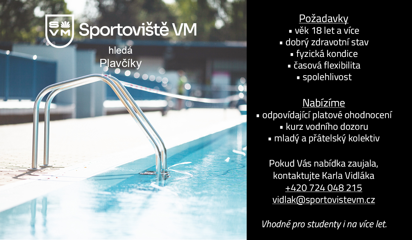 Městská organizace Sportoviště VM hledá na letní koupaliště plavčíky.