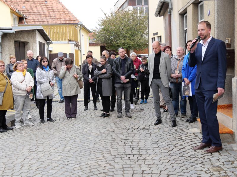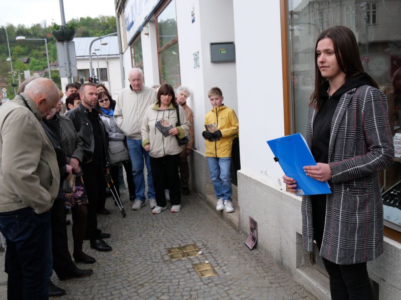 „Transportem odjelo 83 spoluobčanů, ale celkový počet obětí genocidy našich sousedů, rodáků je přes čtyři stovky,“ upřesnil historik a archivář Martin Štindl a připomněl ty, jejichž jména jsou vyryta v nově položených kamenech. Jde o rodinu doktora Schücka a manžele Schnabelovy z Vrchovecké 74, Mořice Himmelreicha z Rozkoše 90, rodinu Müllerových ze Sokolovské 250, rodinu Beckových a Irenu Swartzovou z Novosadů 1186. „Dagmar Schückové bylo teprve dvanáct let, když stanula na rampě vyhlazovacího tábora v Lublinu,“ dodal Štindl.