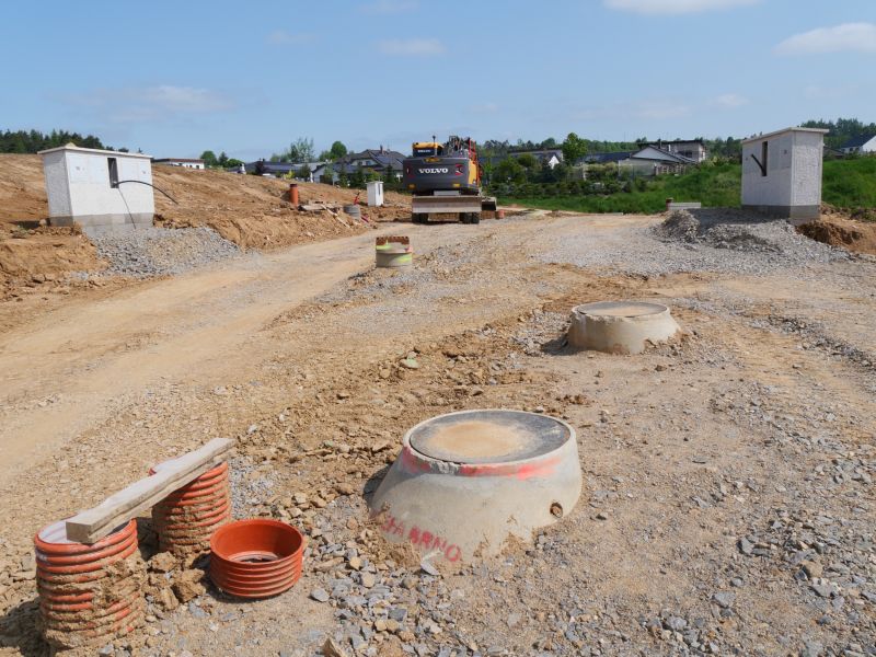 Na Hliništích III, kde vzniká jedenadvacet nových stavebních pozemků, se zrovna konal kontrolní den. „Právě dokončujeme podklady komunikací a budeme pokračovat osazováním obrubníků,“ informoval stavbyvedoucí firmy Aquasys Lubor Kuška. Pak už budou zbývat jenom povrchy ze zámkové dlažby a ve druhé půli prázdnin dojde na pokládku asfaltů.