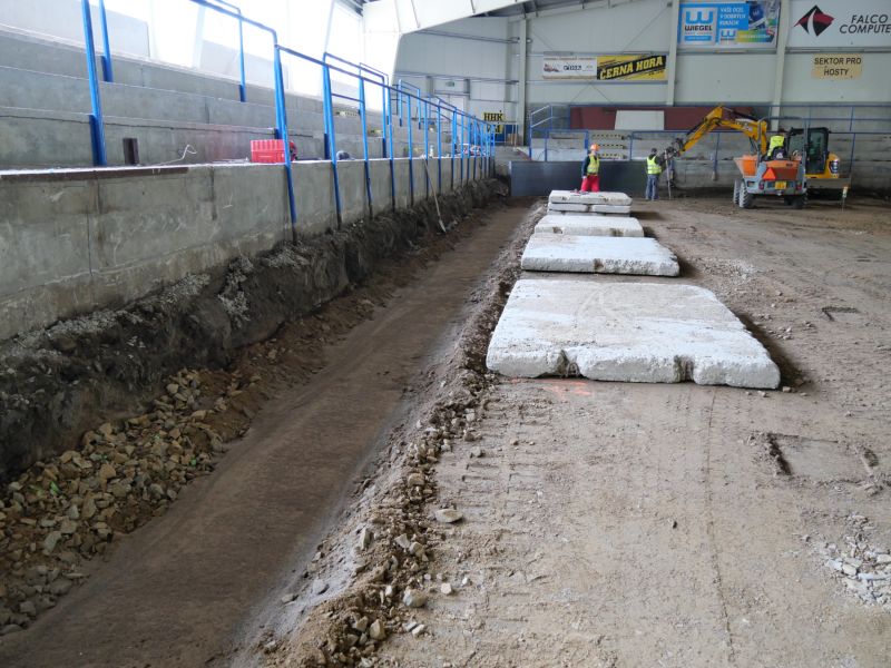 Rekonstrukce zimního stadionu je ve fázi zemních prací, probíhá hutnění podkladních vrstev. „Za zimním stadionem, od řeky, vznikne rozcvičovací plocha pro hokejisty,“ informoval radní Jaroslav Juda z hokejového klubu.