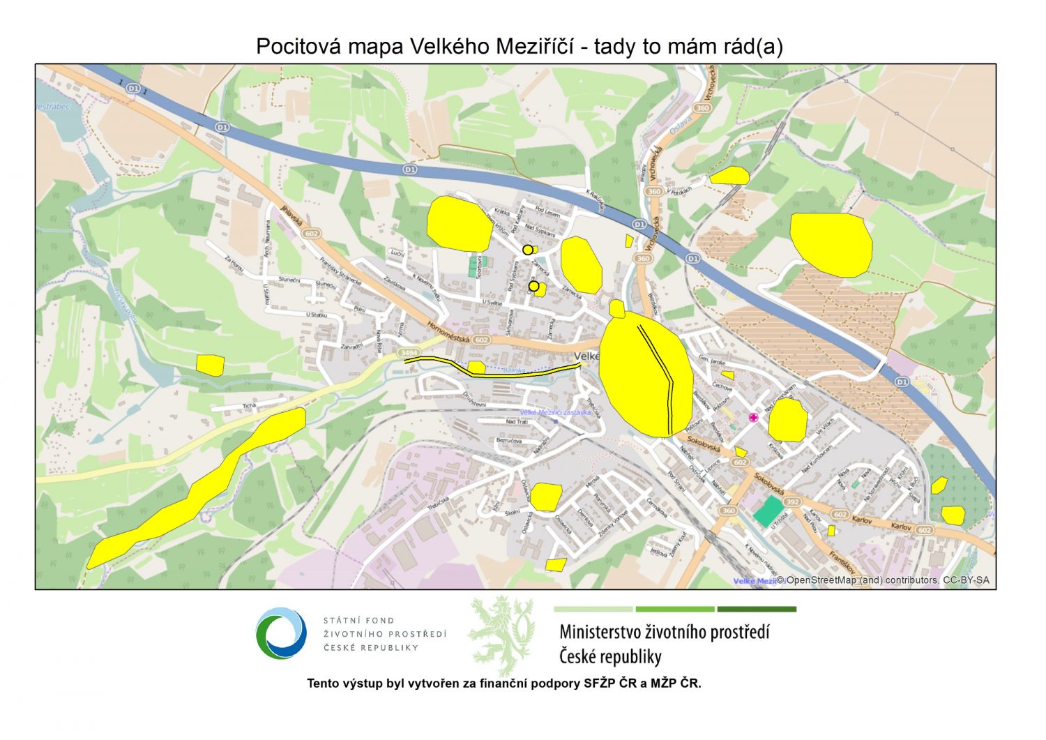 Možnost zapsat svoje pocity do mapy města lidé měli v rámci akce i později, třeba během Dne zdraví na náměstí. Zúčastnila se asi šedesátka občanů. Ti barevnými pastelkami vyznačili do mapy města svoje pocity – tedy kde konkrétně to mají rádi (žlutě), kde jsou na město hrdí (oranžově), kde rádi nakupují (modře) a tráví volný čas (zeleně), která místa naopak pociťují jako ošklivá (černě) či kudy neradi jezdí (hnědě). Výsledkem je pocitová mapa Velkého Meziříčí.