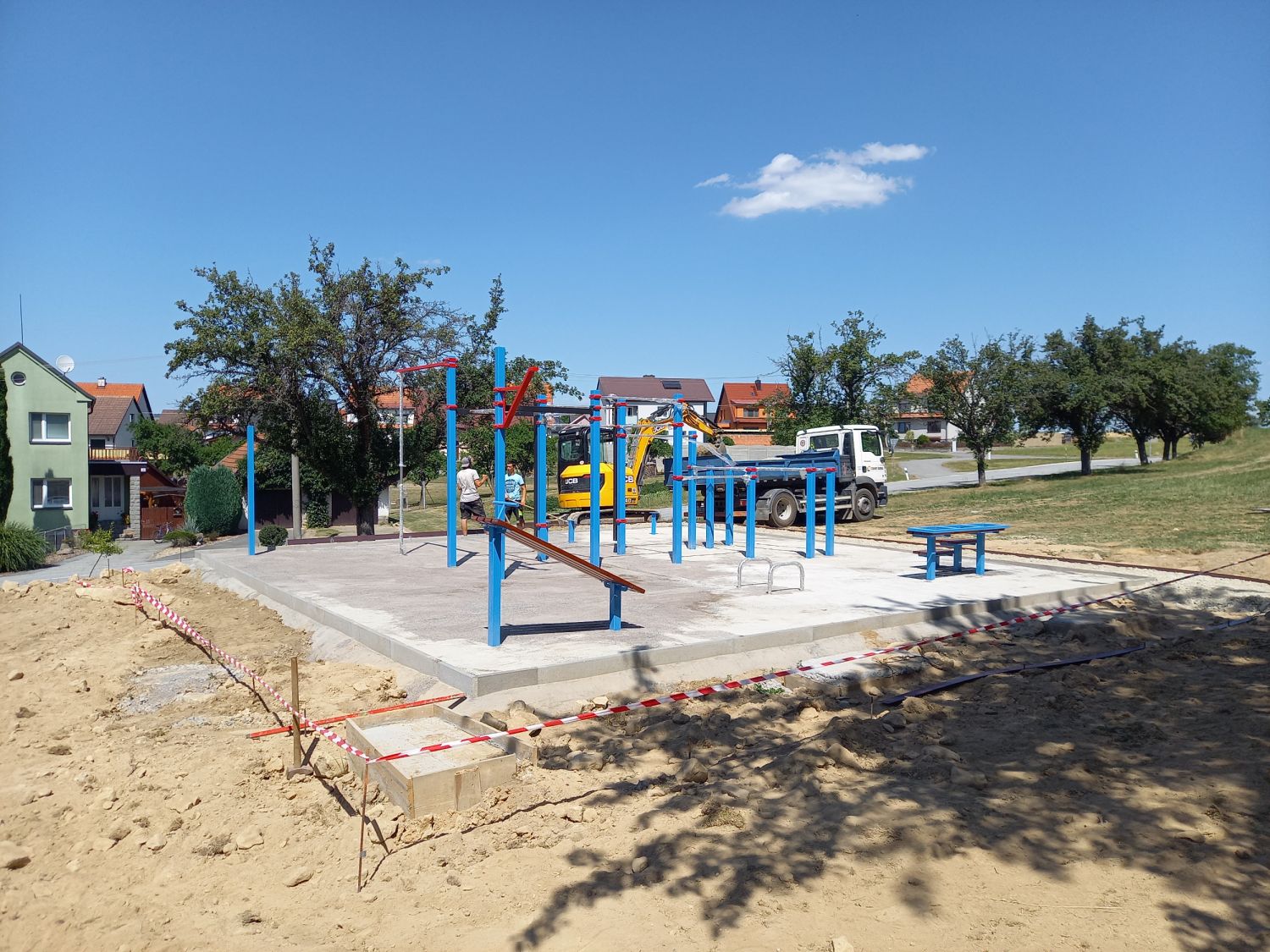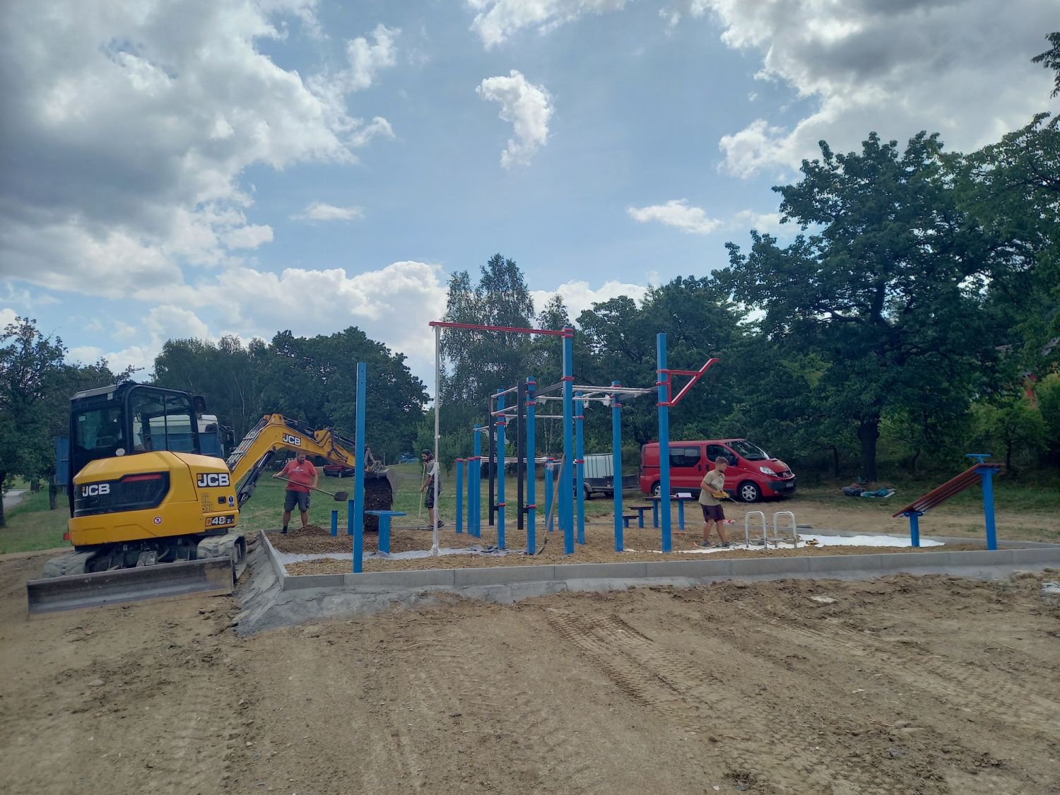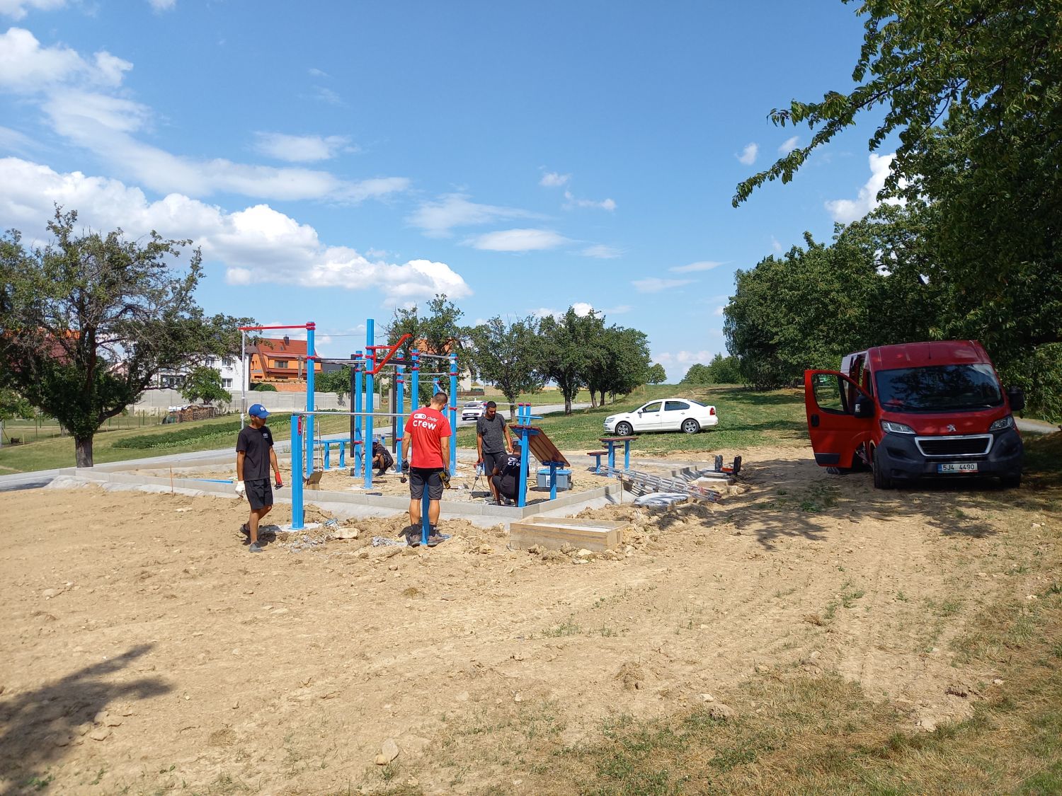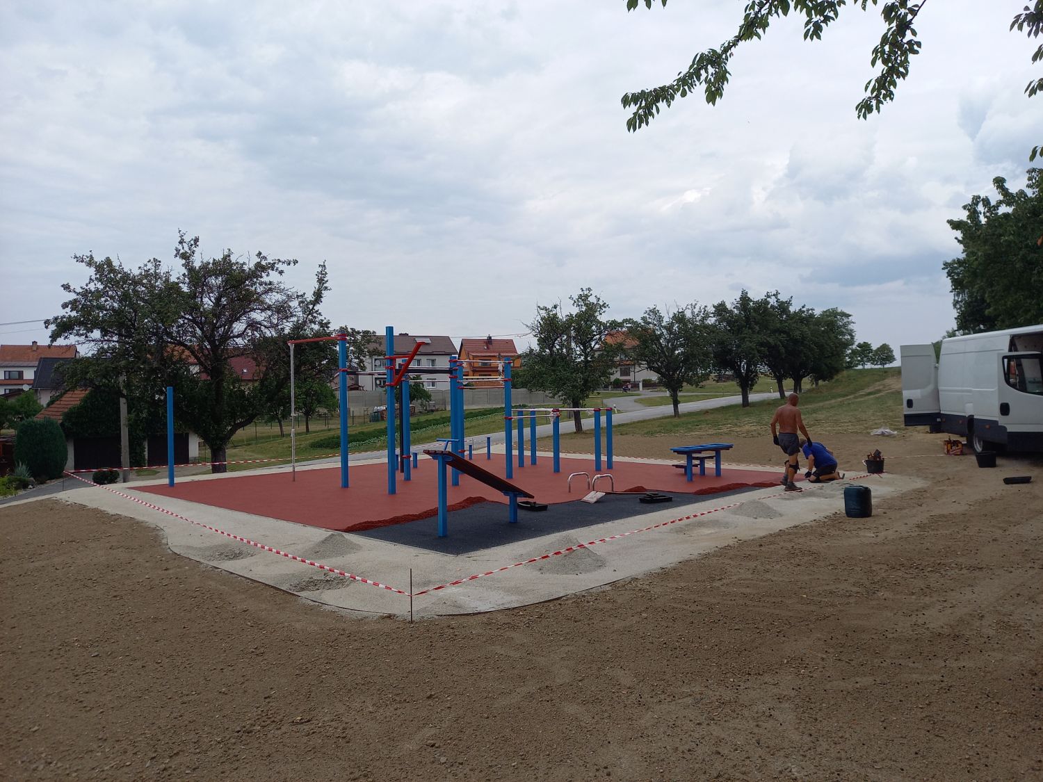 Začalo tedy budování workoutového hřiště HYBRID PLUS. Toto hřiště je variantou velmi oblíbeného hřiště HYBRID, která navíc obsahuje prvky se zvýšenou kritickou výškou pádu. Kromě základních prvků pro cvičení s vlastní váhou, jako jsou hrazdy v různých výškách a variantách, i dvojitá bradla, stalky, držáky na kruhy, monkey bar pro ručkování, svislé žebřiny, různé lavice a informační tabuli; na ní najdeme ještě držák na lano, svislou trubku pole dance, šikmý žebřík na ručkování monkey bar wing, a na ploše ještě stupínky step up a lavici se stalky. HYBRID PLUS je vhodný jako hřiště pro obce nad 2000 obyvatel, hodí se do parků, jako vybavení sportovních ploch a míst určených k aktivnímu trávení volného času. Najednou na něm může cvičit až 26 lidí.