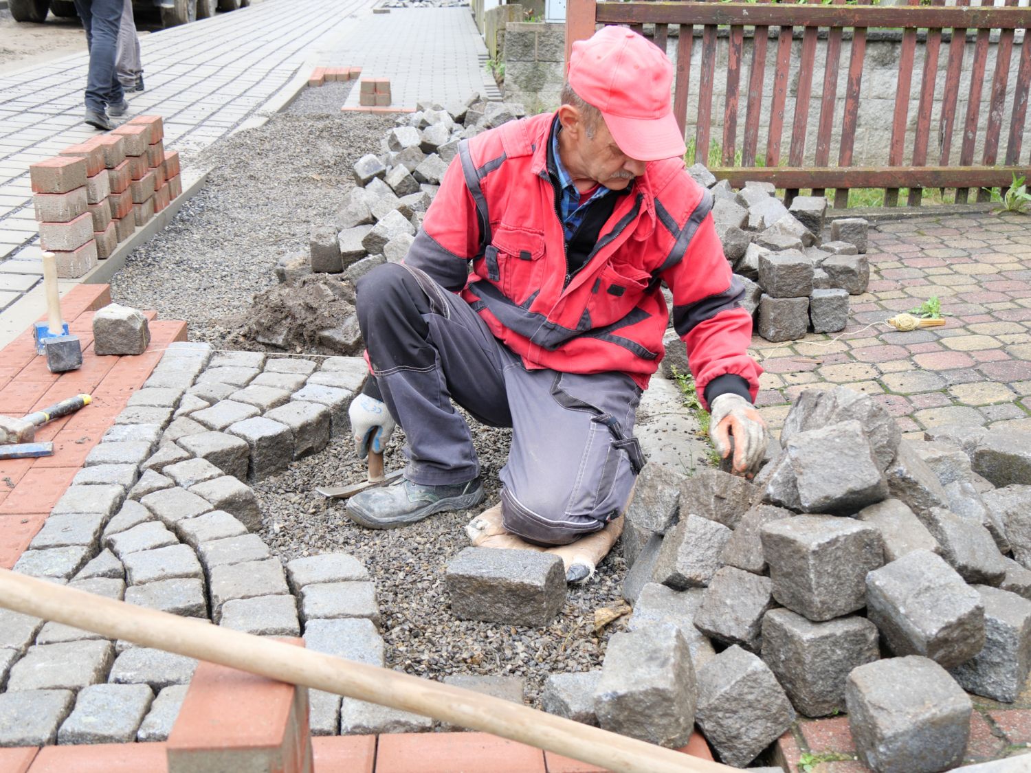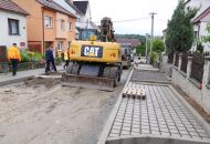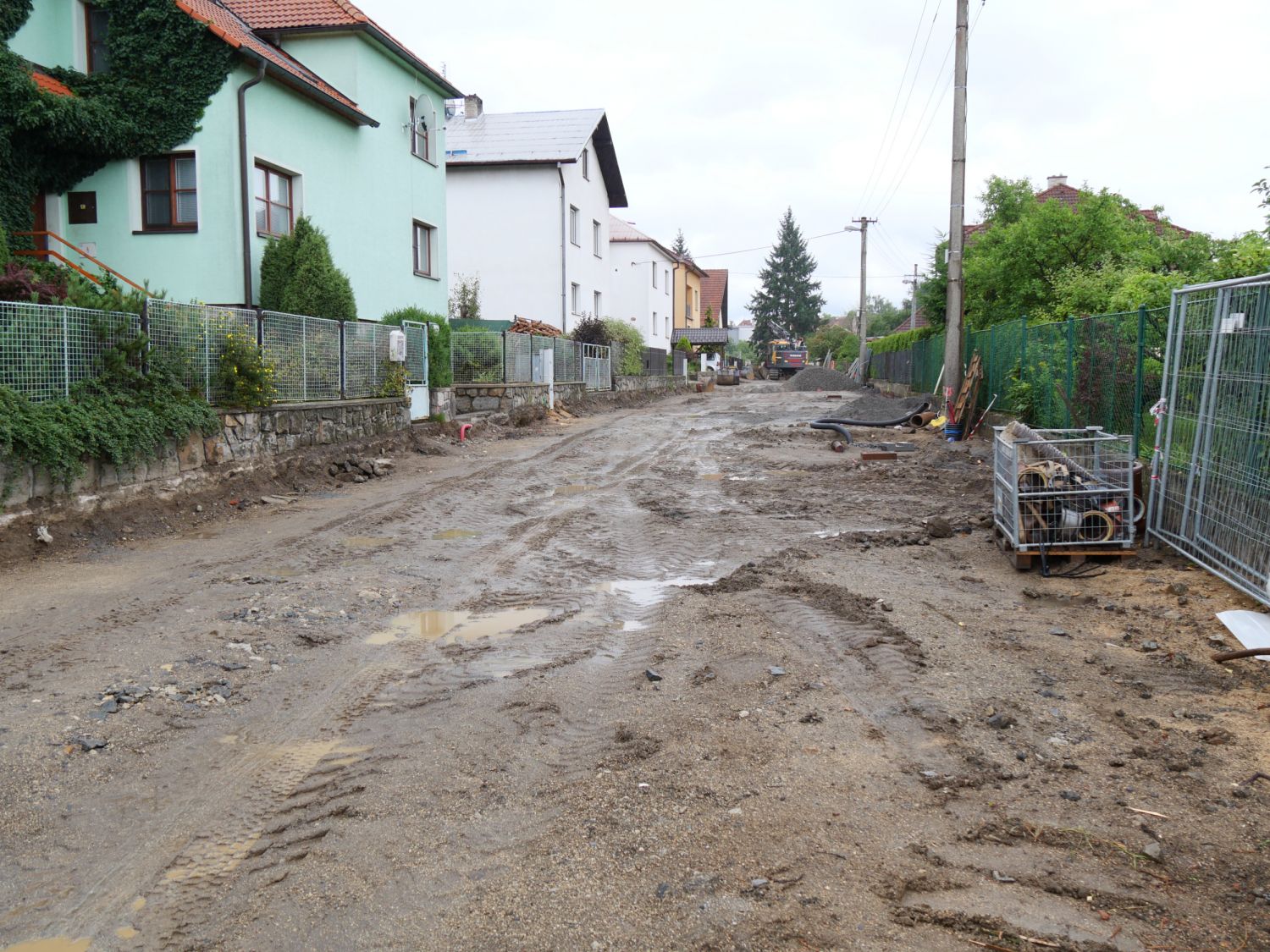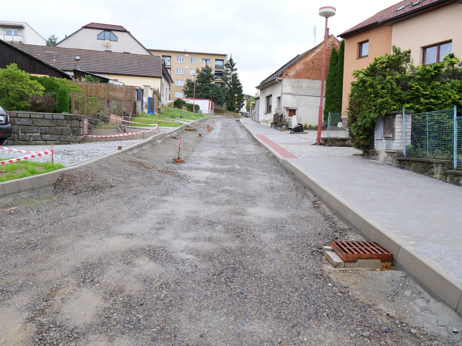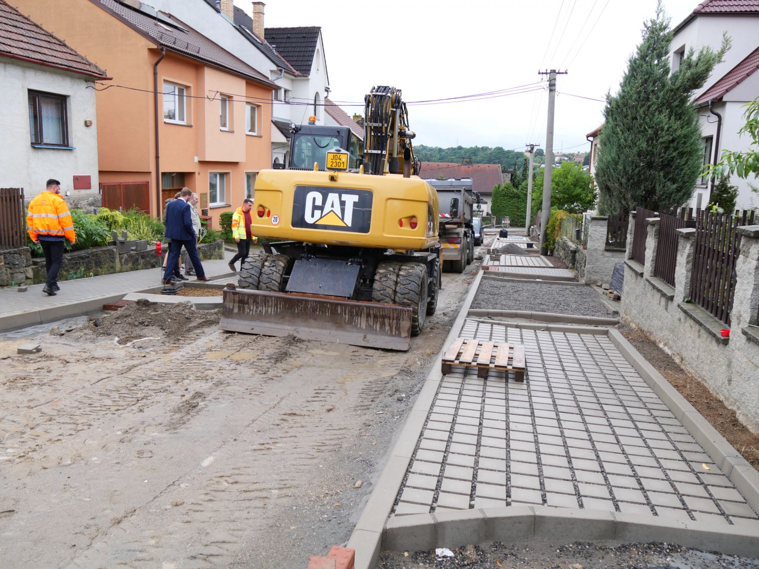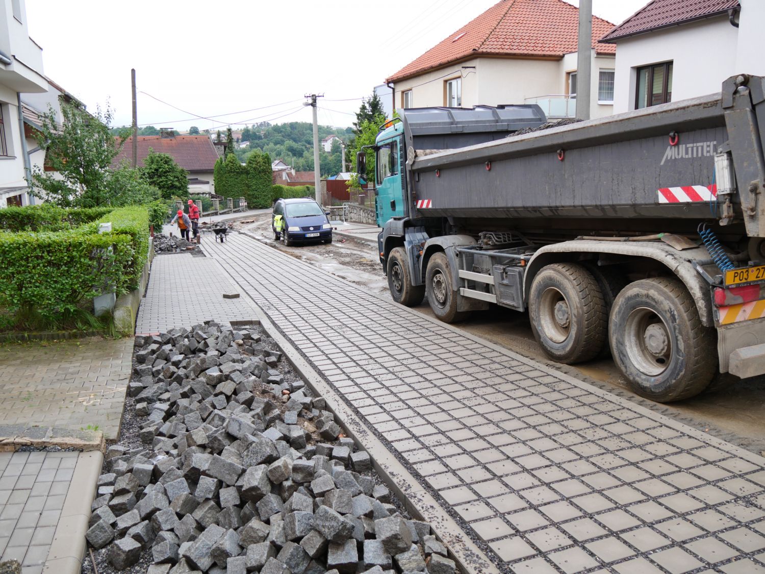 Nad křižovatkou s Kolmou je uložená většina podzemních sítí, pracovníci začínají usazovat obrubníky a bude následovat dláždění chodníků, vjezdů a parkovacích stání.