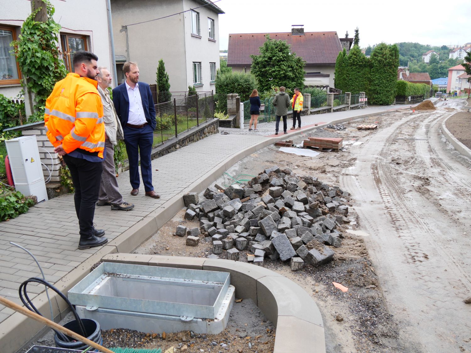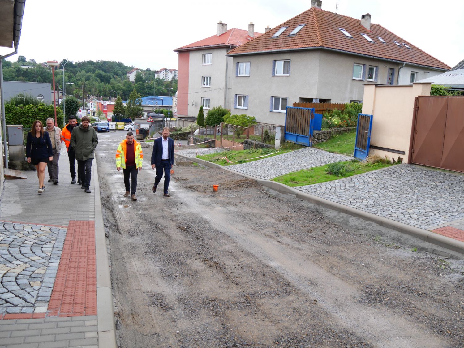 Ulice Ve Vilách po rekonstrukci prokoukne. Už teď je to znát. Radní si prošli nový chodník Nad Sv. Josefem a ve spodní části ulice Ve Vilách. Seznámili se i s tím, jak pokročily práce nahoře nad křižovatkou s Kolmou ulicí.