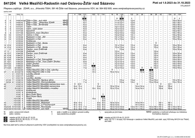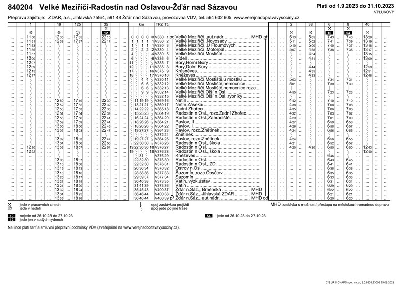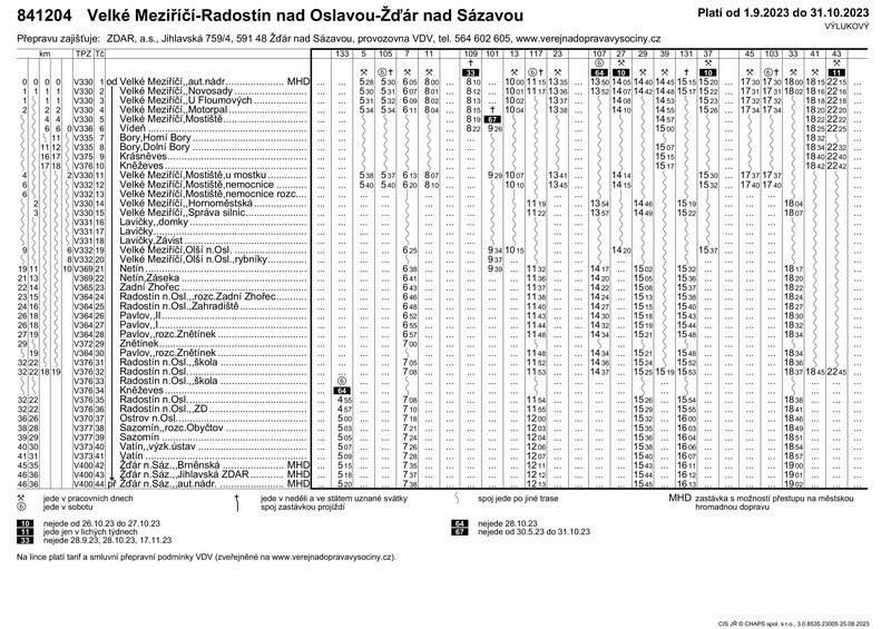 Od 1. září platí výlukové jízdní řády na linkách 840204 a 841204, které jsou dotčené uzavírkou silnice III/35433 Netín – Olší nad Oslavou.