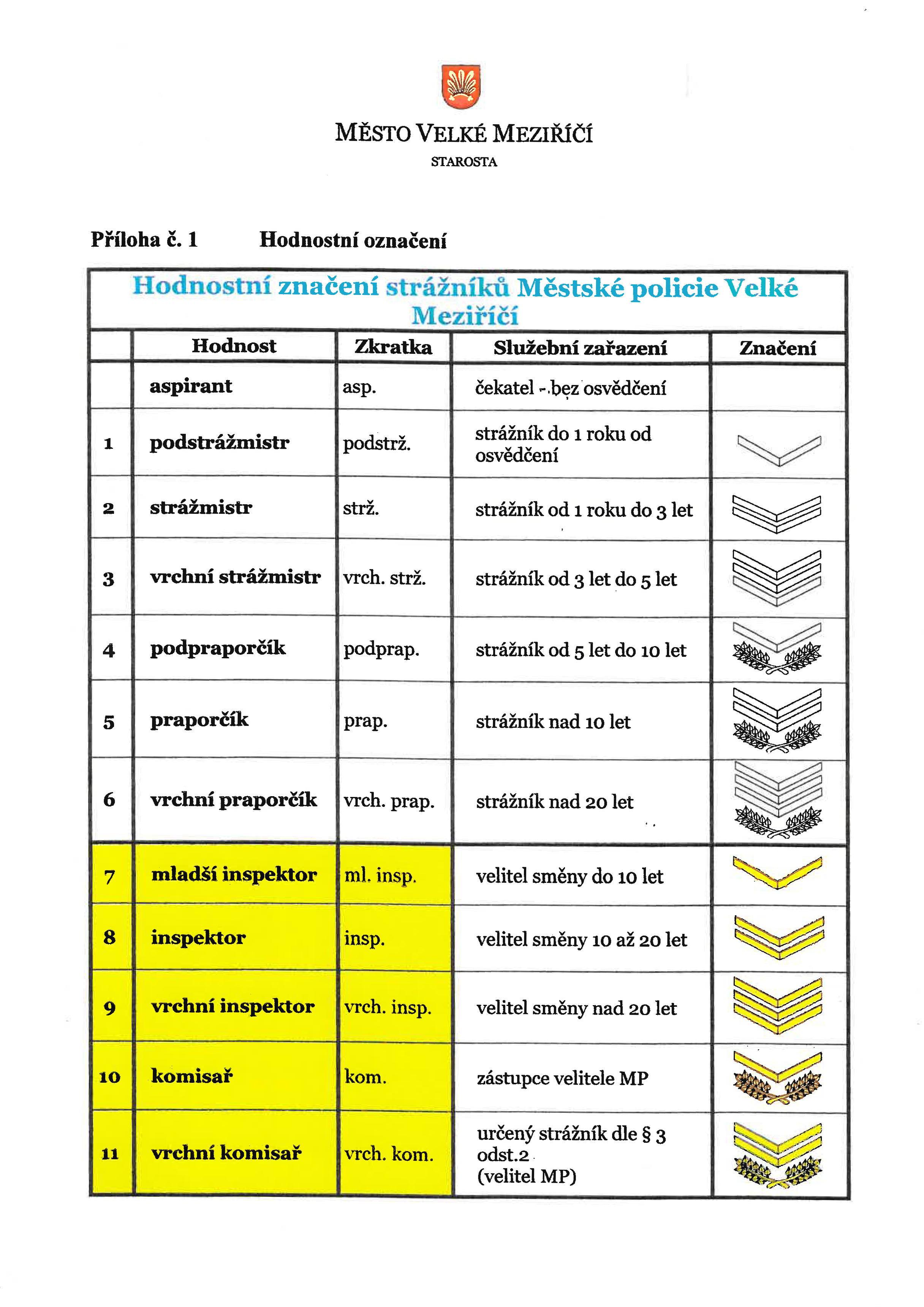 Od 1. srpna letošního roku se Městská policie Velké Meziříčí (MP) připojila k hodnostnímu označení strážníků obecních a městských policií v celé České republice.