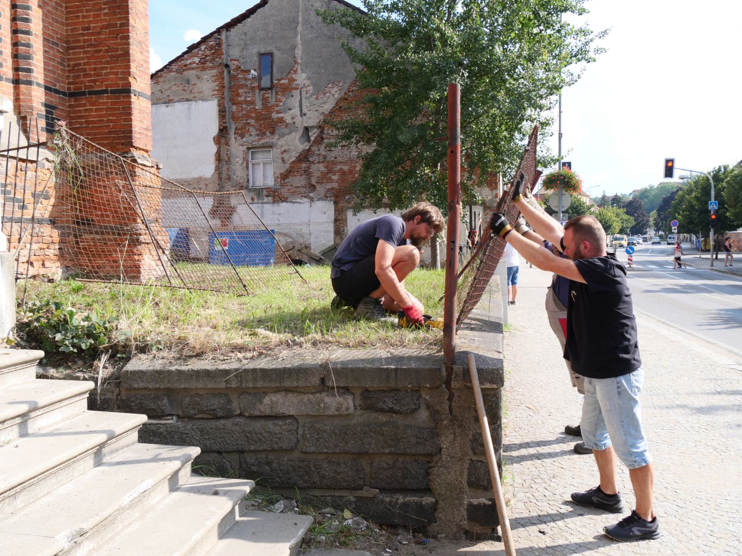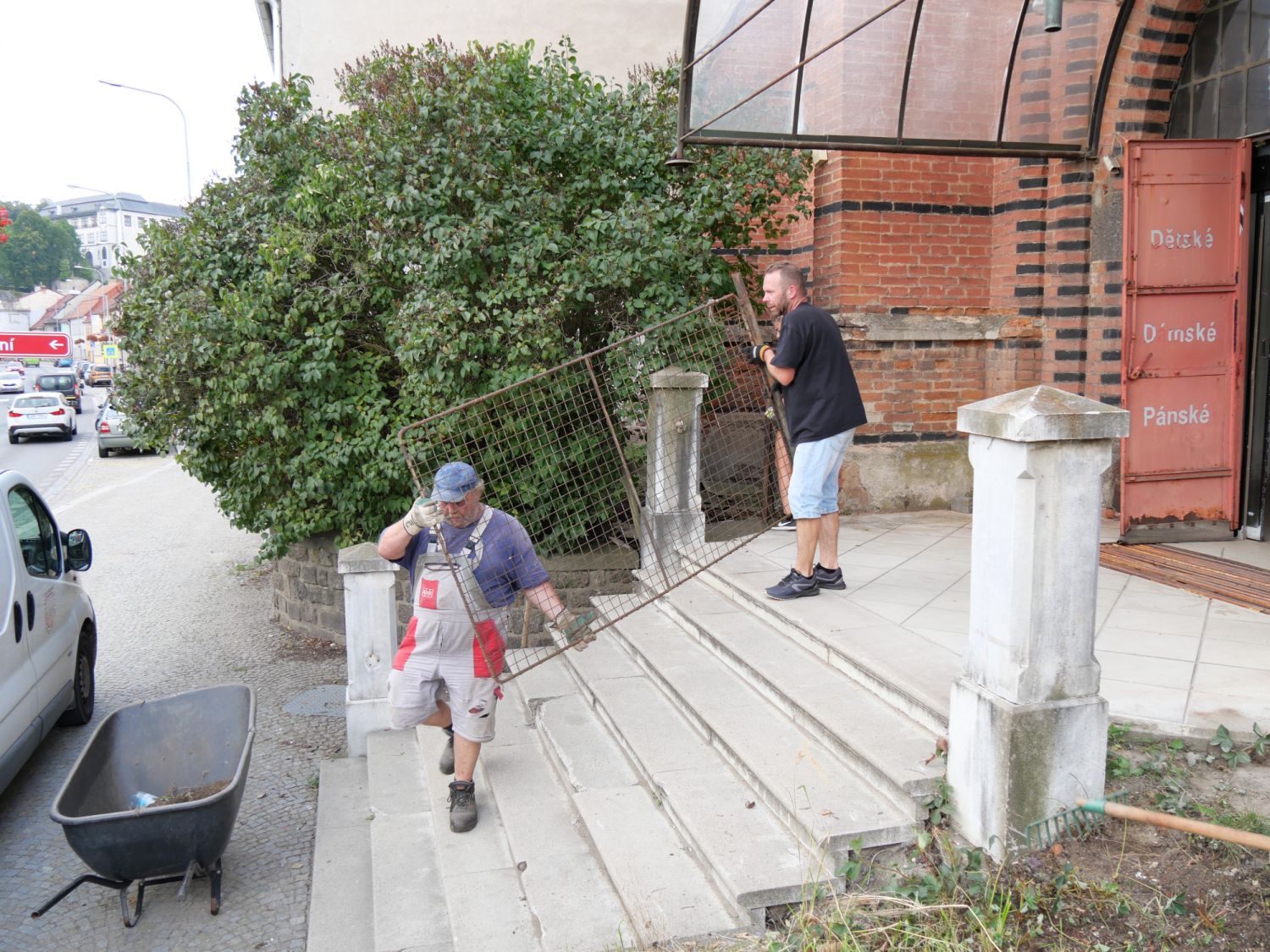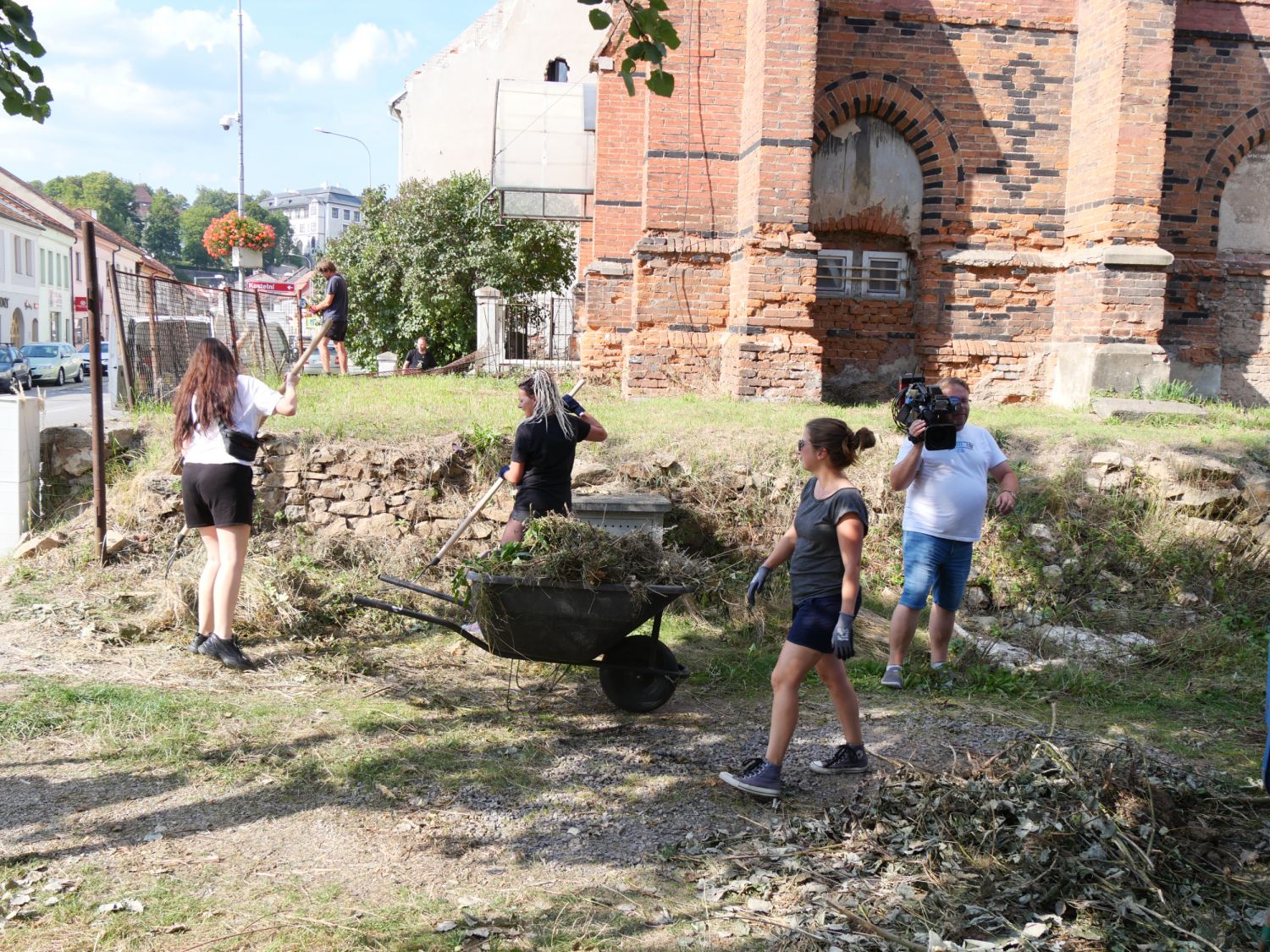 V synagoze bylo ve středu živo. Sešla se tu necelá třicítka brigádníků, kteří uklidili nepořádek a vyčistili prostory kolem ní. Mimo nich se během celého odpoledne trousili zájemci dychtiví prozkoumat budovu uvnitř odspodu až nahoru.