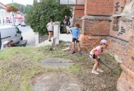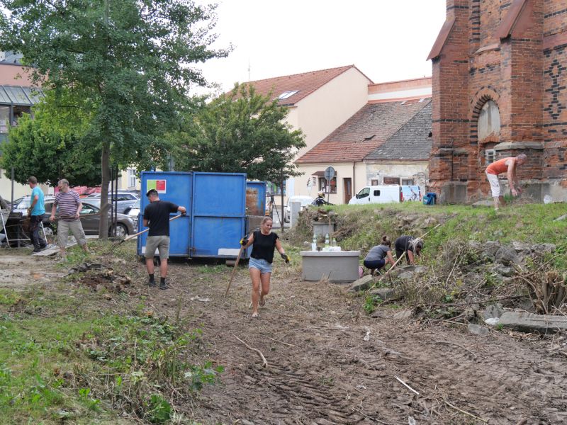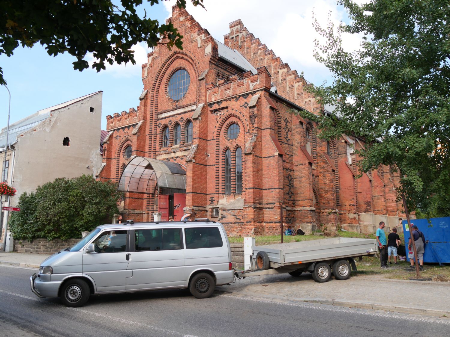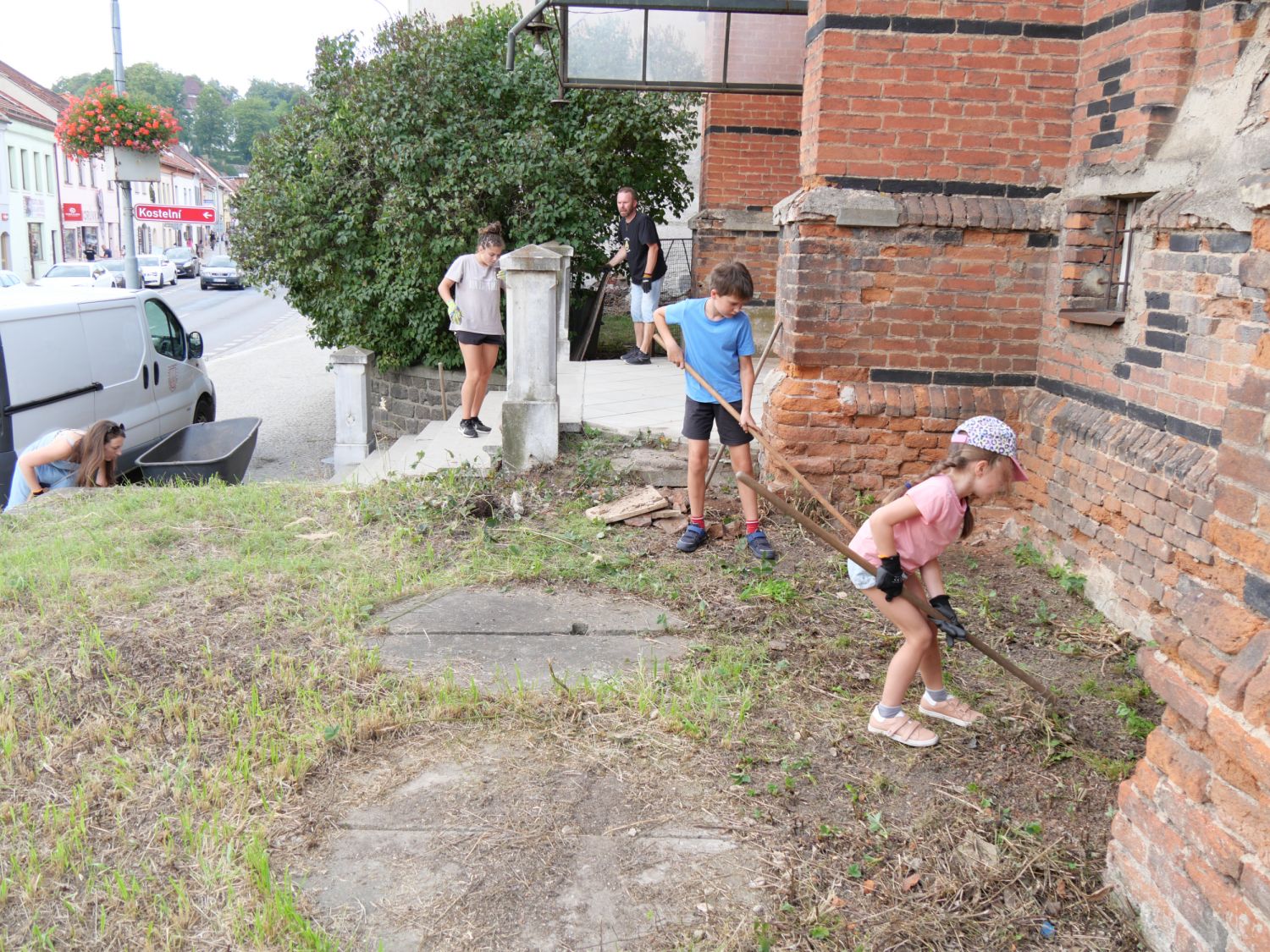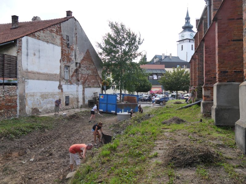 V synagoze bylo ve středu živo. Sešla se tu necelá třicítka brigádníků, kteří uklidili nepořádek a vyčistili prostory kolem ní. Mimo nich se během celého odpoledne trousili zájemci dychtiví prozkoumat budovu uvnitř odspodu až nahoru.