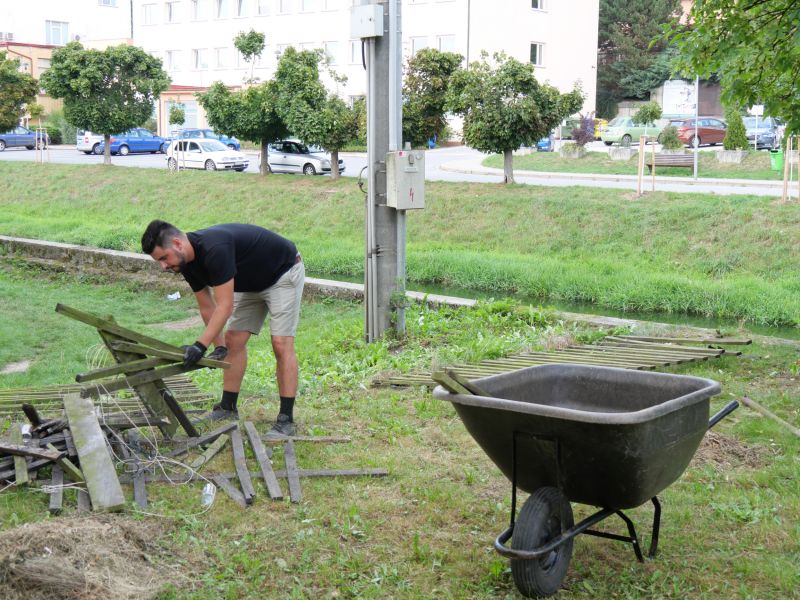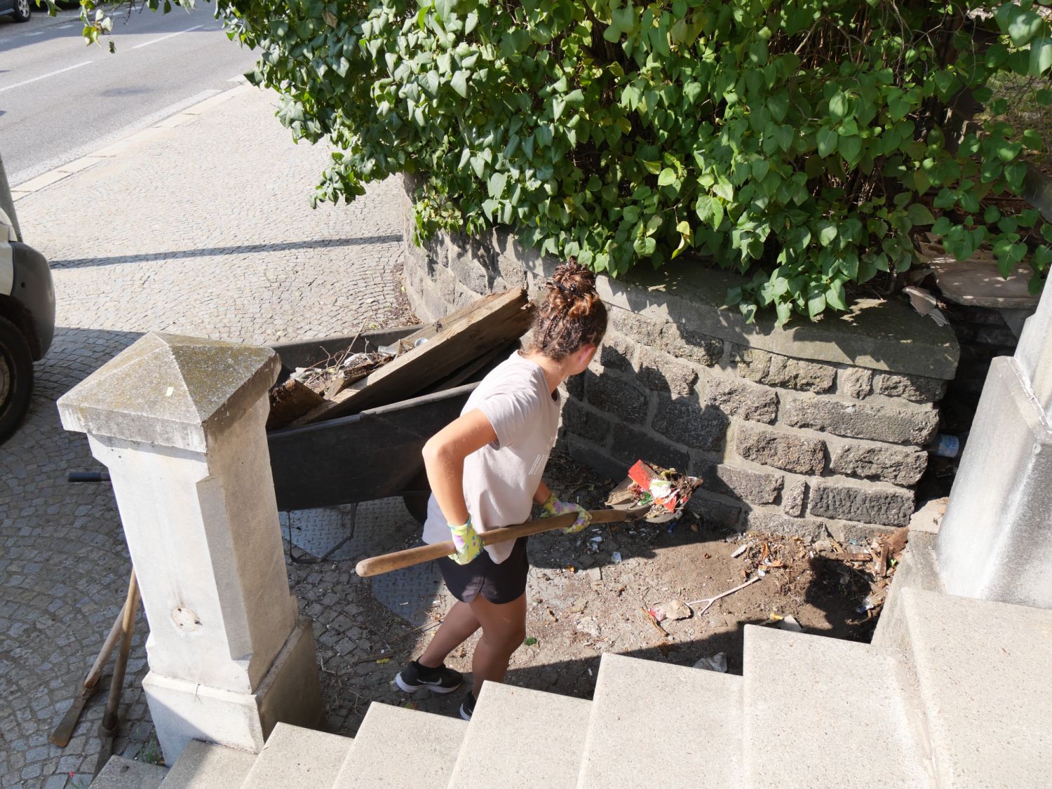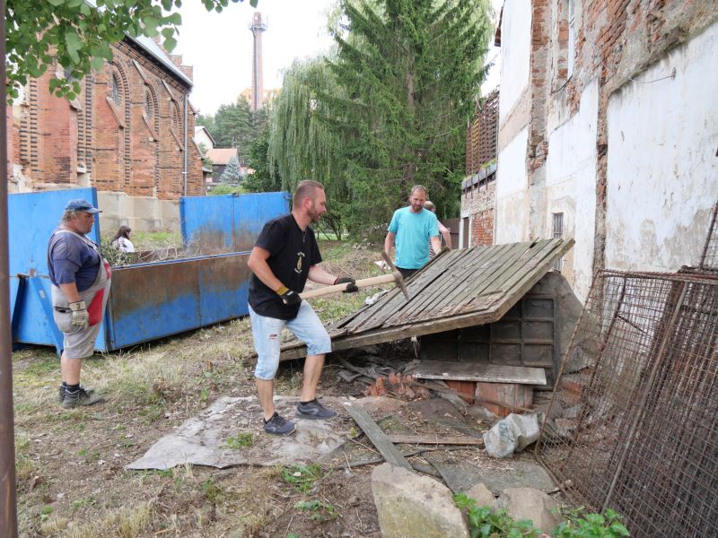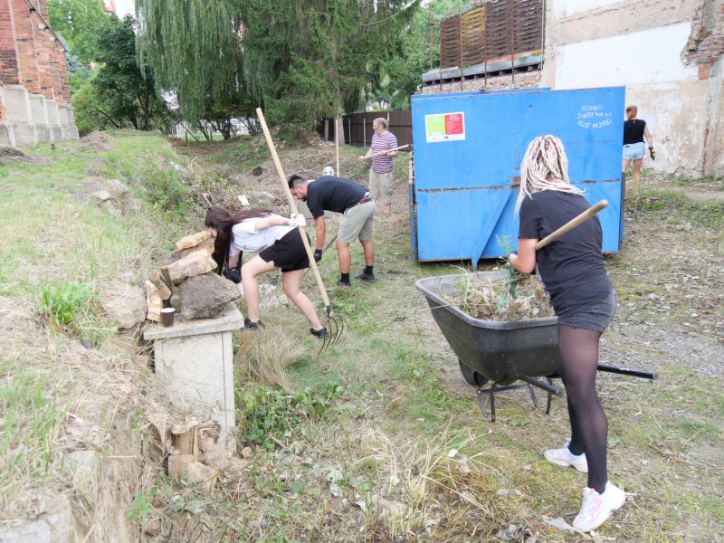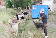 Dobrovolníci vyhrabali trávník, zametli schody a ostatní pevné plochy, prořezali keře, odstranili ploty, přetřeli vrata, vysbírali odpadky a vše naložili do připraveného kontejneru. Až do večera měli co dělat. V odvážení větví a velkých věcí pokračovali druhý den pracovníci technických služeb.