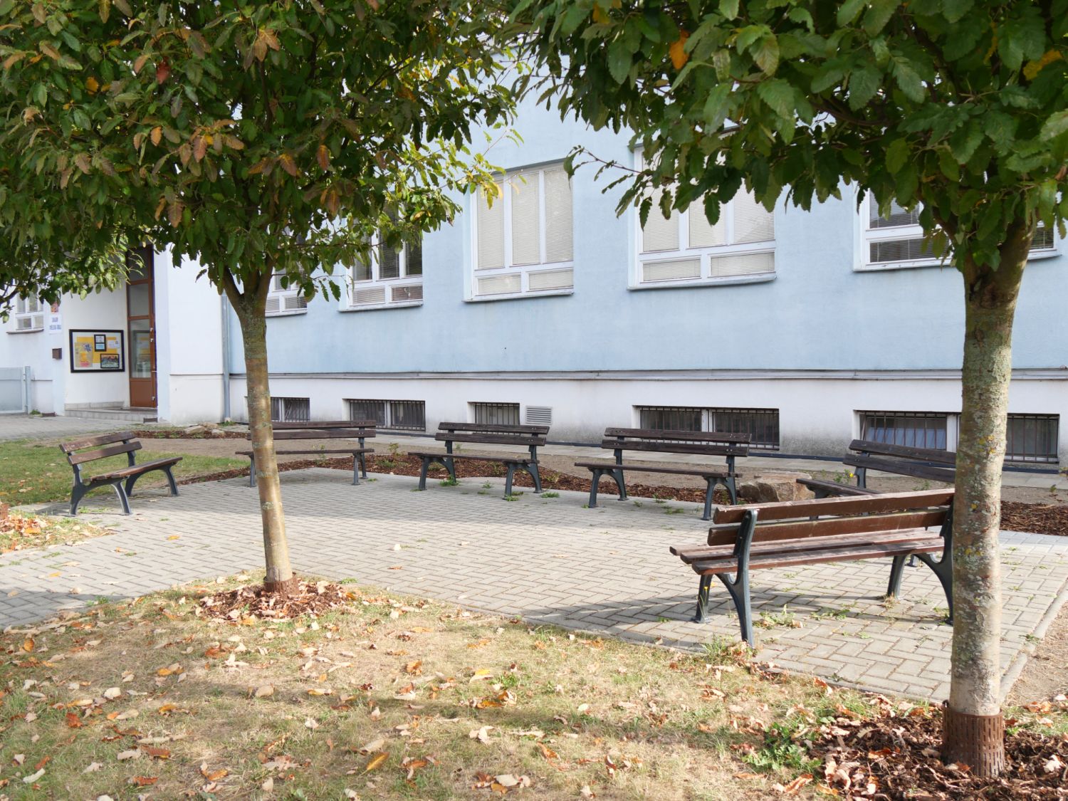 Při té příležitosti pracovníci vyčistili a obnovili i zelené plochy kolem budovy včetně pásu do školního dvora.