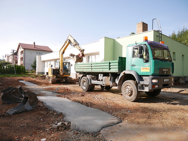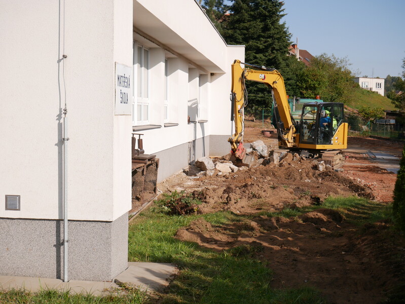 Krásné podzimní počasí přeje stavebním pracím, a tak i na přístavbě mateřské školy v Mostištích se intenzivně pracuje. Už je hotová skrývka a vybetonované základy, nyní se pracuje na inženýrských sítích.
