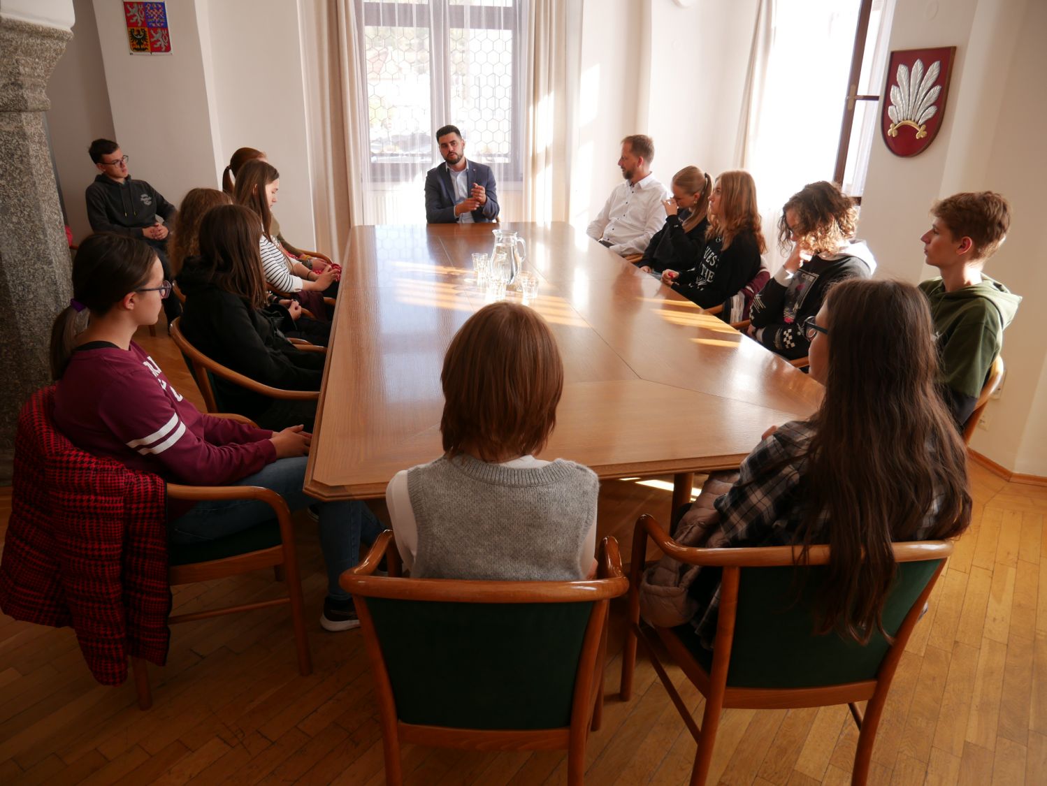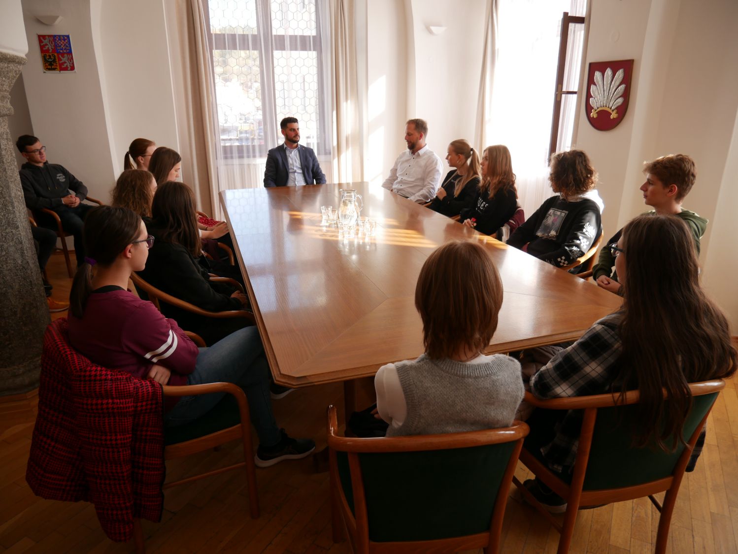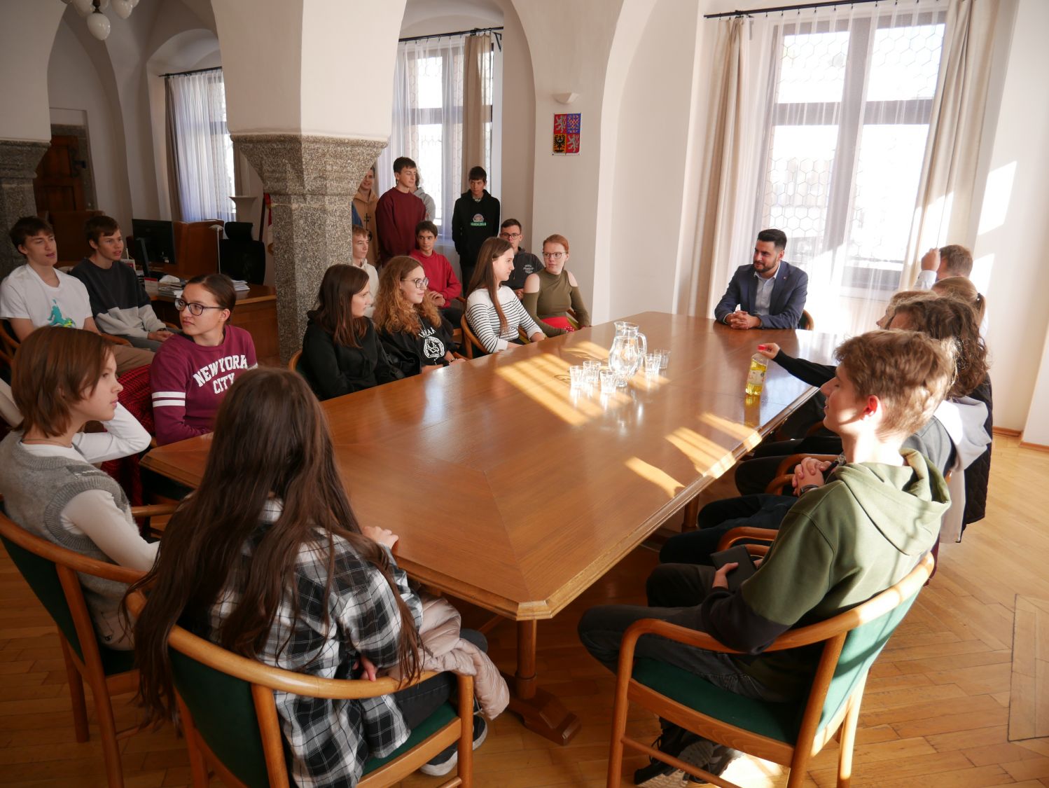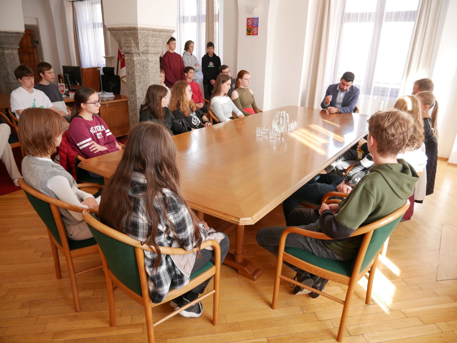 Studenti, kteří právě ve škole probírají obecní samosprávy, si pozorně vyslechli starostovo povídání o tom, jak město, potažmo samospráva fungují. Nastínil rozsah práce starosty, rady města a také zastupitelstva. Studentům též připomněl, že za pár let, až dospějí a budou se zajímat o veřejný život a budou chtít něco na životě města změnit, je zastupitelský mandát tou nejlepší cestou.