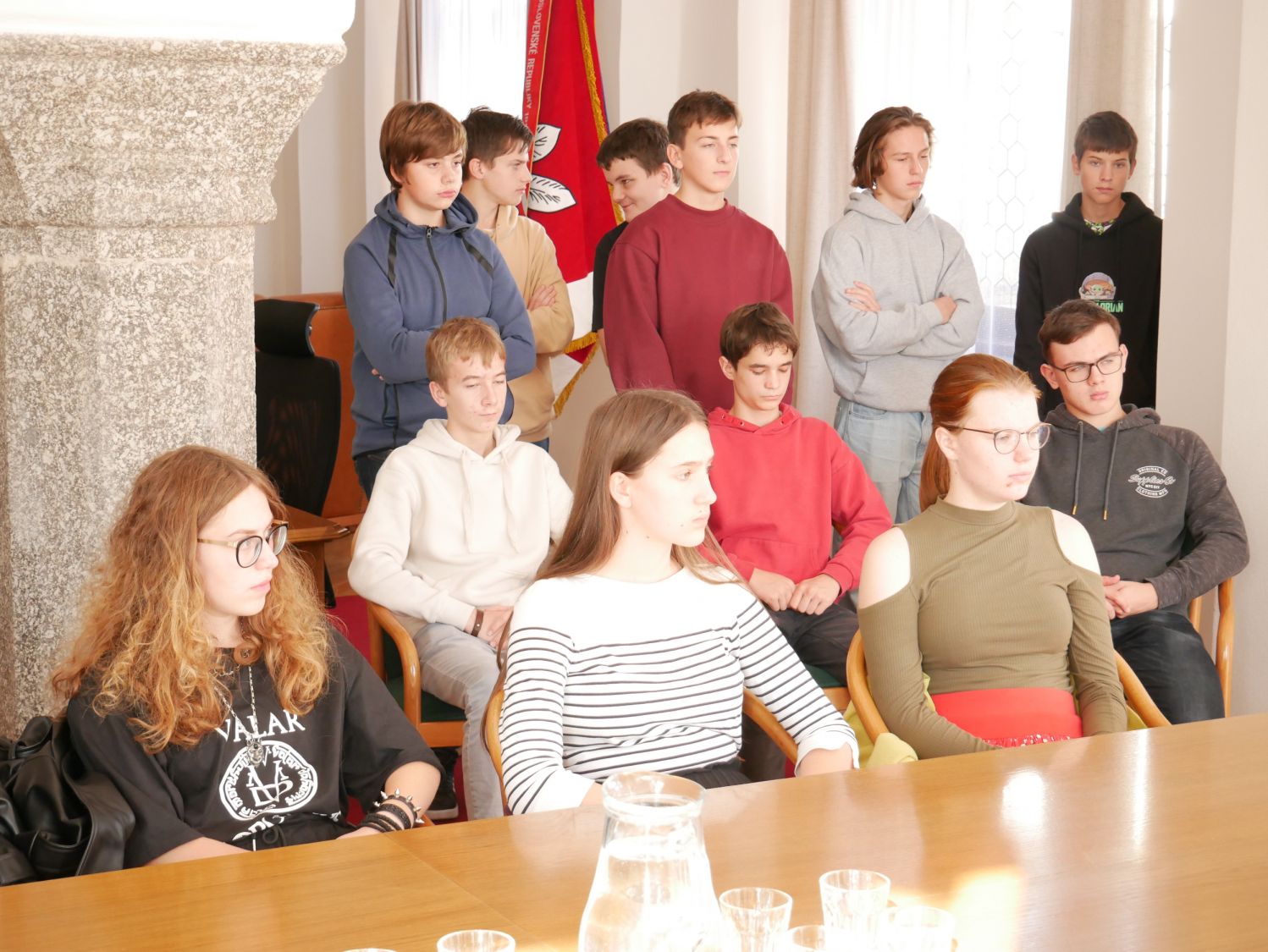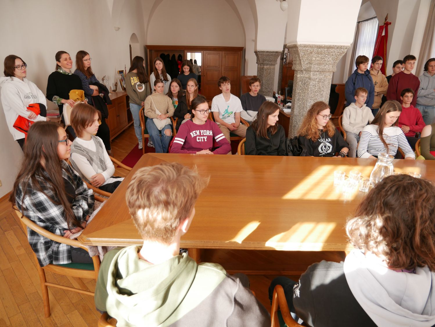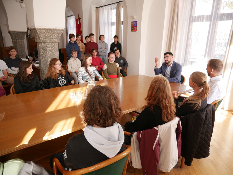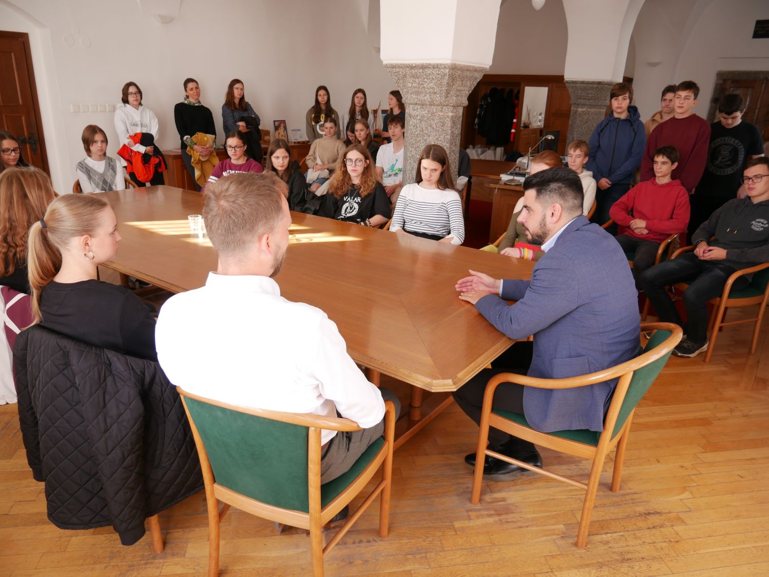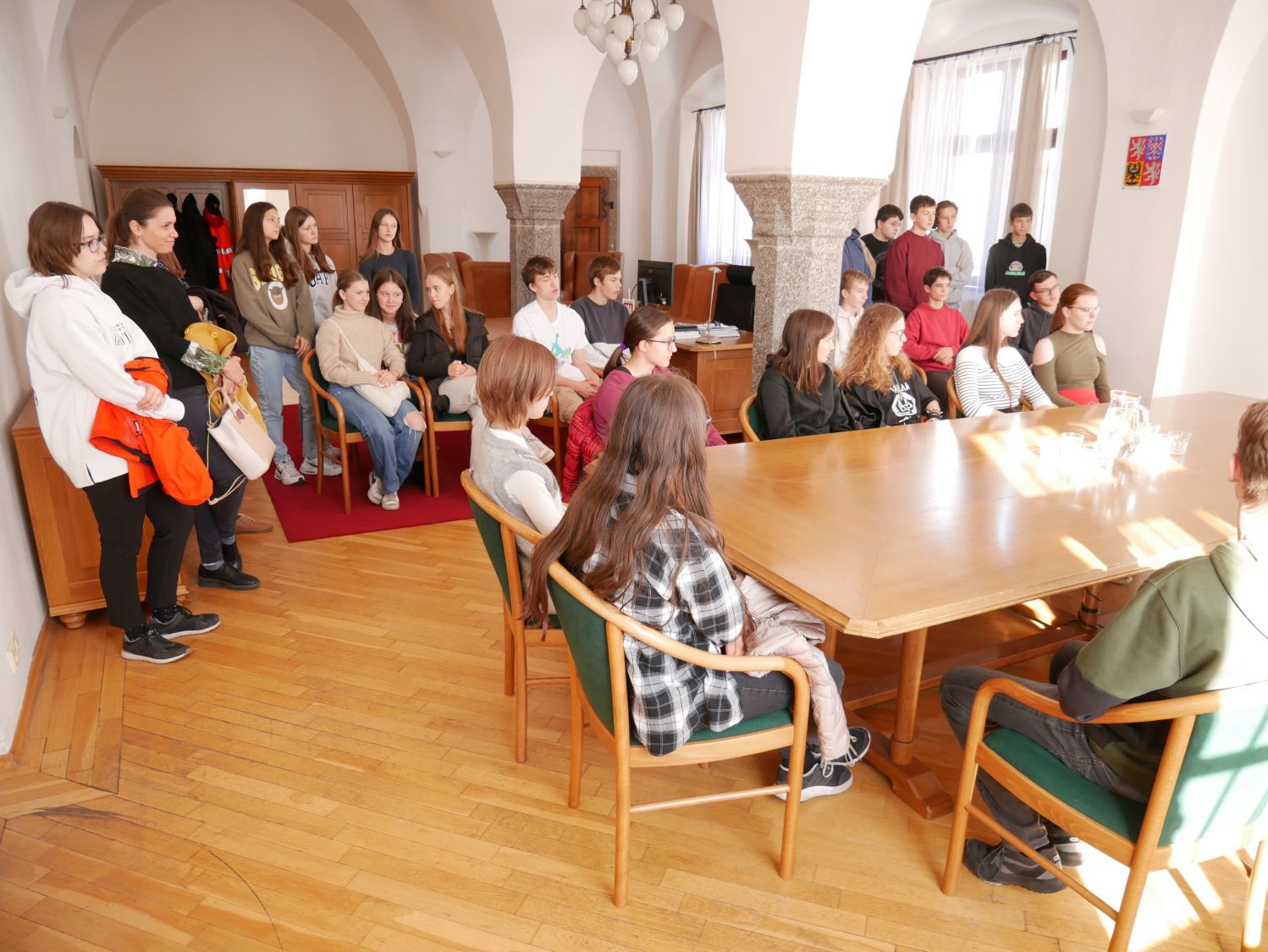 Studenti, kteří právě ve škole probírají obecní samosprávy, si pozorně vyslechli starostovo povídání o tom, jak město, potažmo samospráva fungují. Nastínil rozsah práce starosty, rady města a také zastupitelstva. Studentům též připomněl, že za pár let, až dospějí a budou se zajímat o veřejný život a budou chtít něco na životě města změnit, je zastupitelský mandát tou nejlepší cestou.