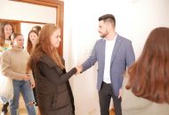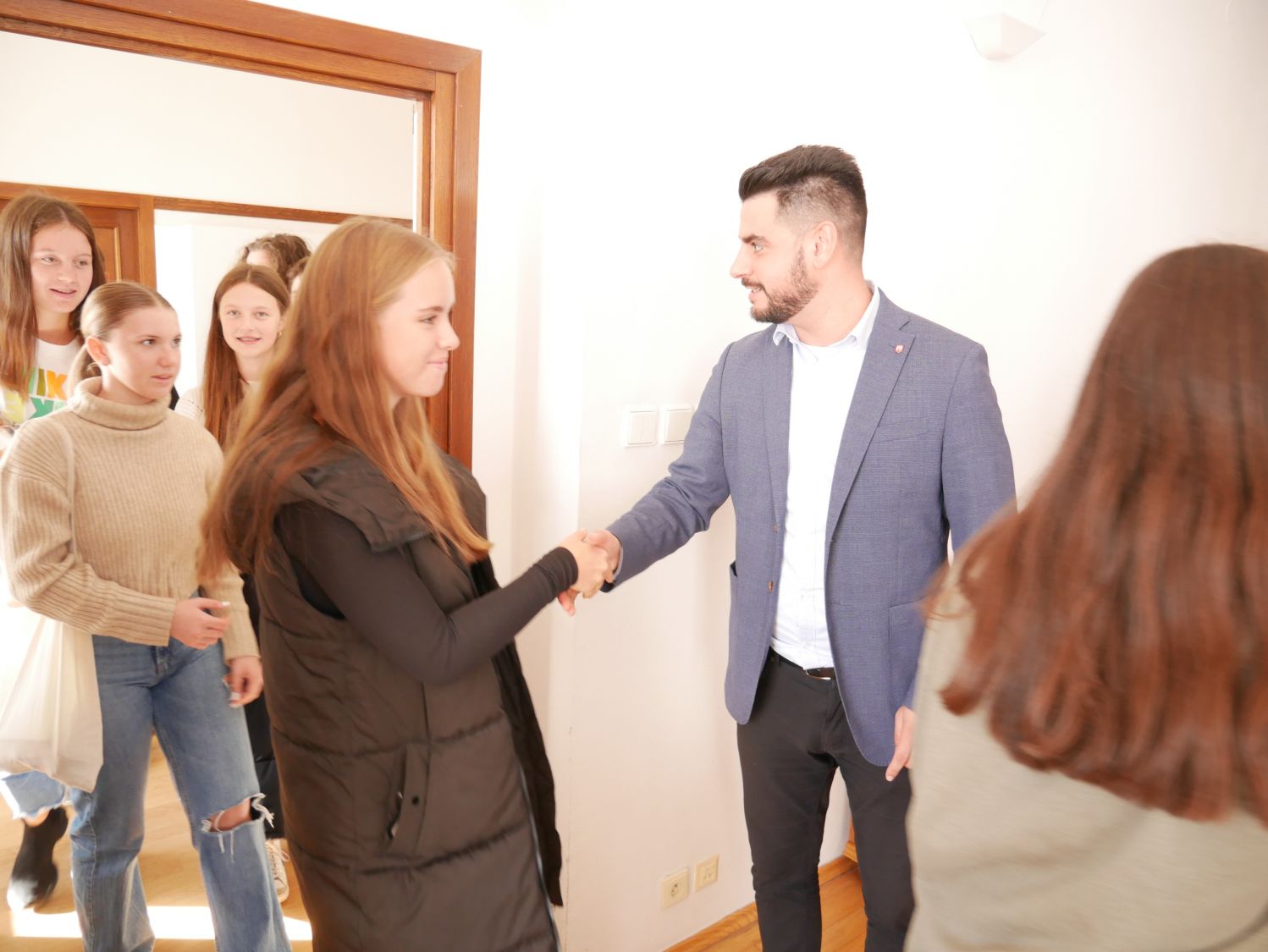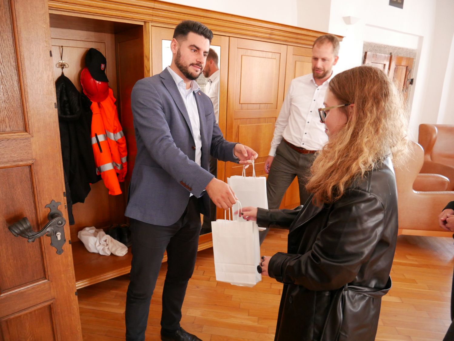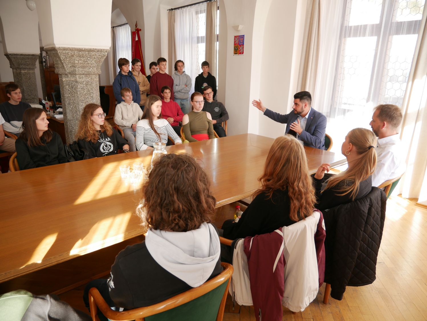 V pondělí hodinu předpolednem zavítali žáci kvarty z Gymnázia Velké Meziříčí na radnici. Ve své kanceláři je přijal starosta města Alexandros Kaminaras spolu s místostarostou Martinem Kamanem.