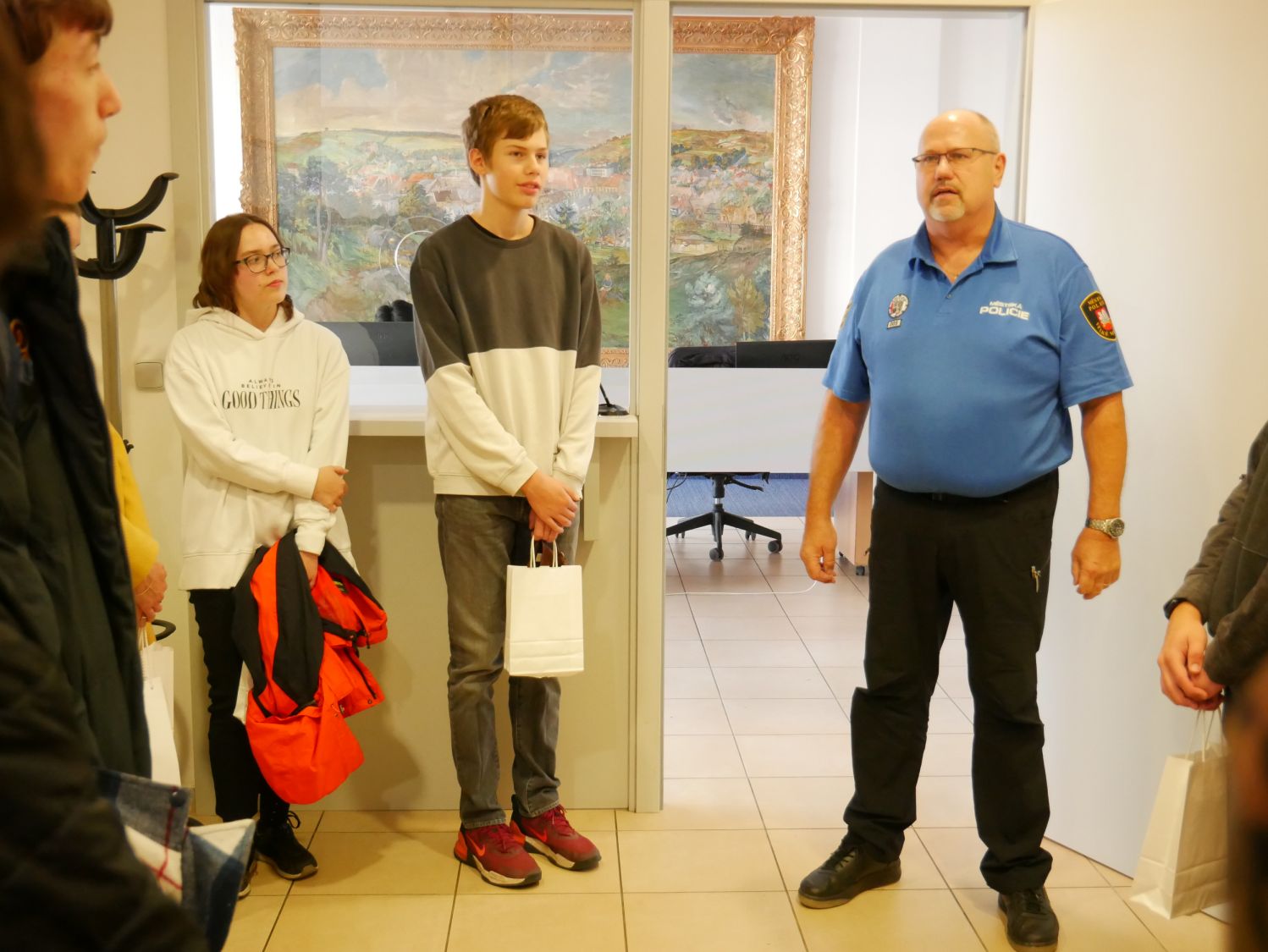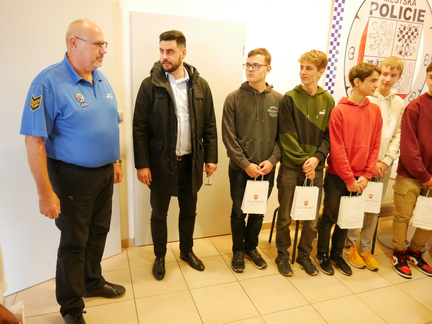 Po zhruba hodinové příjemné besedě u starosty v kanceláři se studenti kvarty přesunuli do budovy bývalé spořitelny, kde se seznámili s chodem služebny městské policie. Po ní je provedl vrchní komisař Jan Klikar.